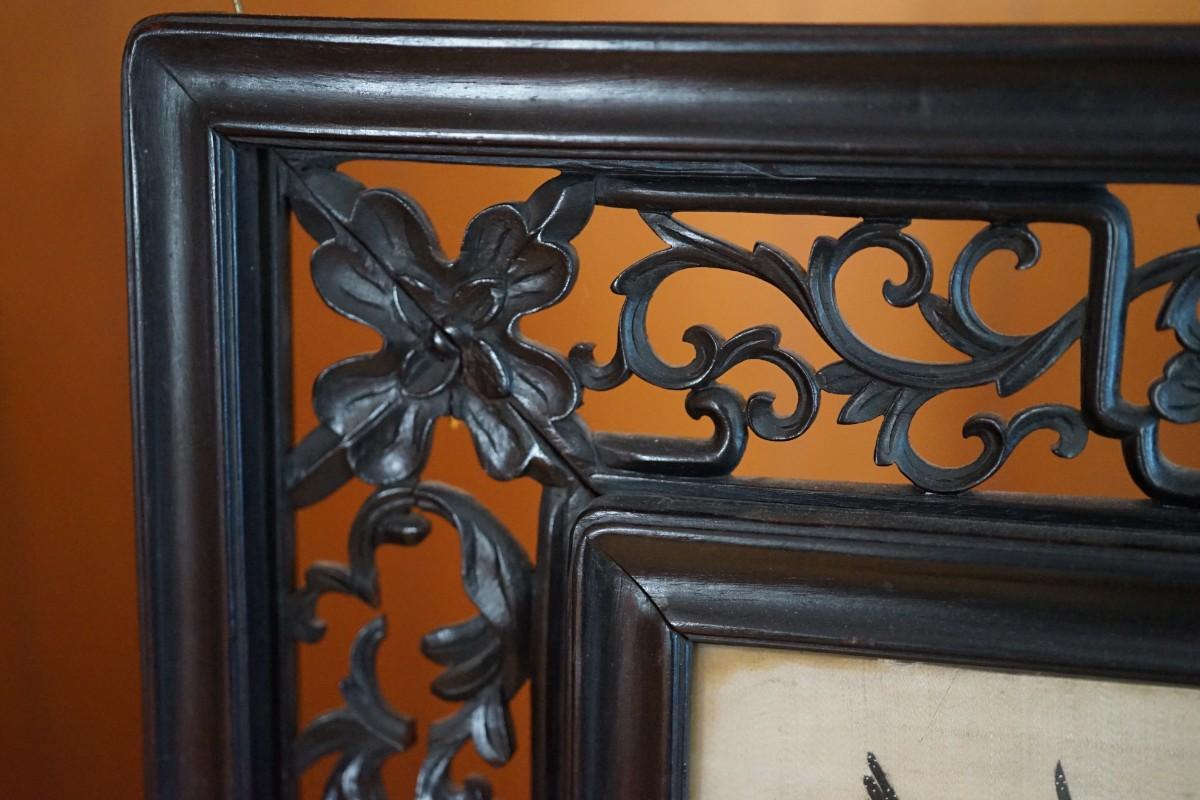 CHINESE IMPERIAL QING DYNASTY EMBROIDERY ON SILK IN HEAVY CARVED FRAME - LARGE