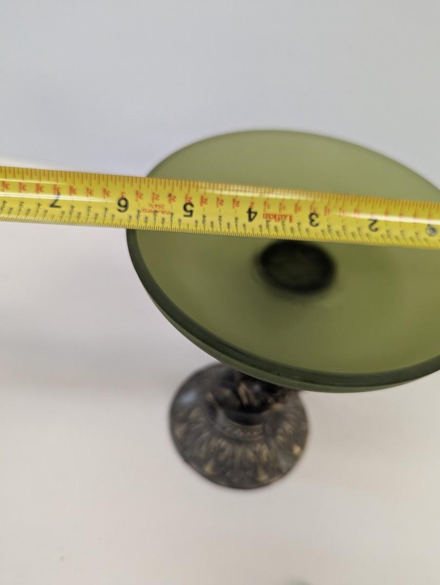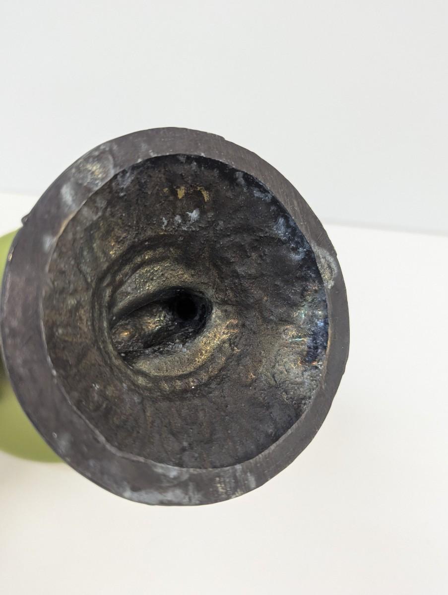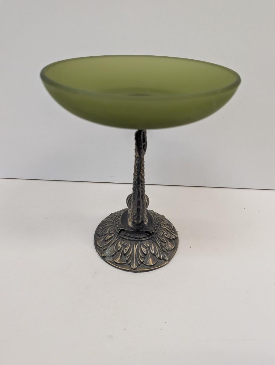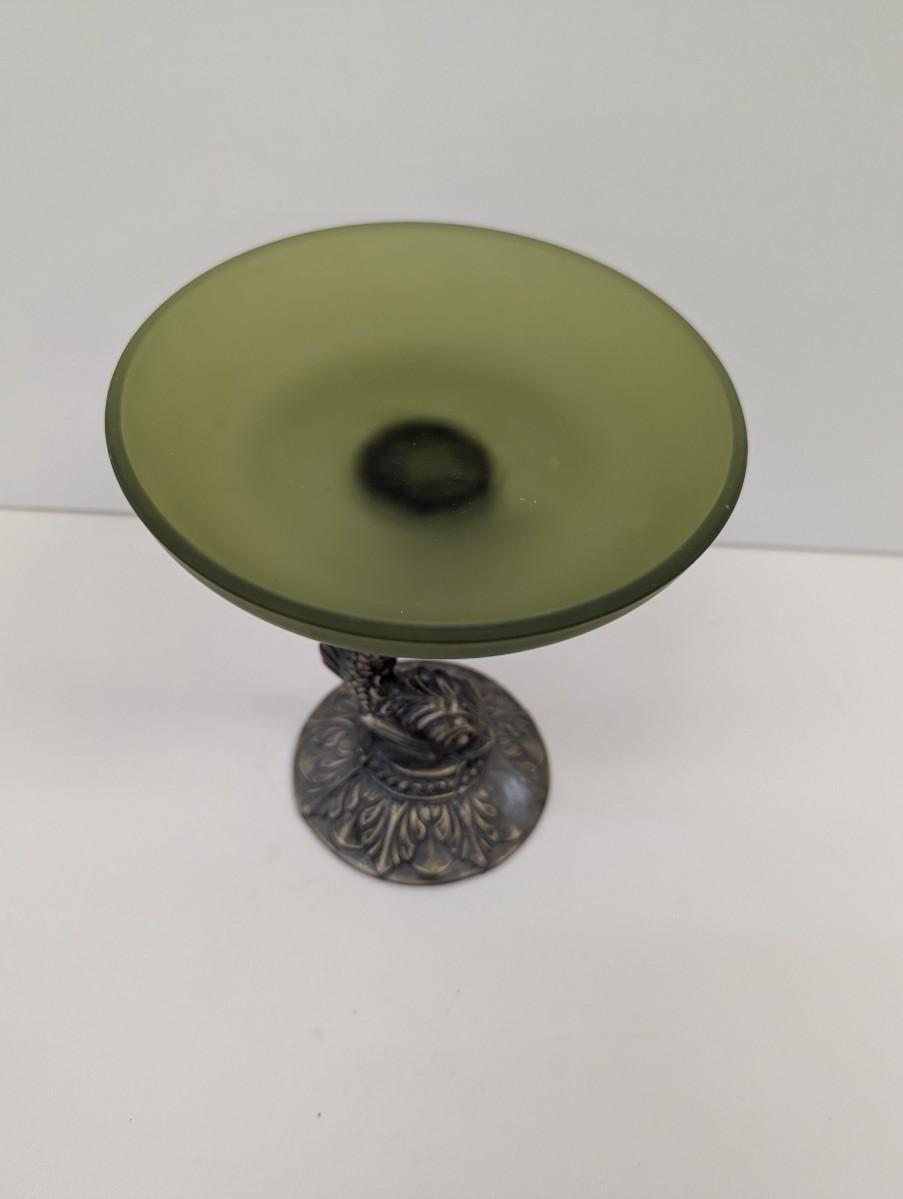 Chinese Koi Fish Bronze Metal Base With Green Trinket Dish 9 1/4" Tall