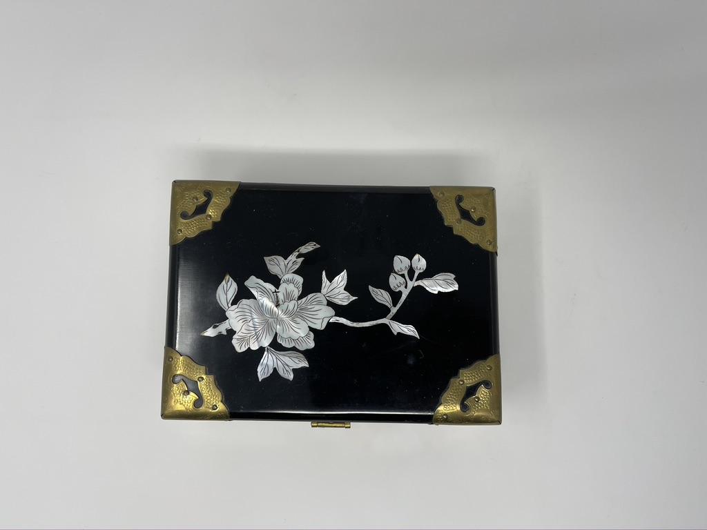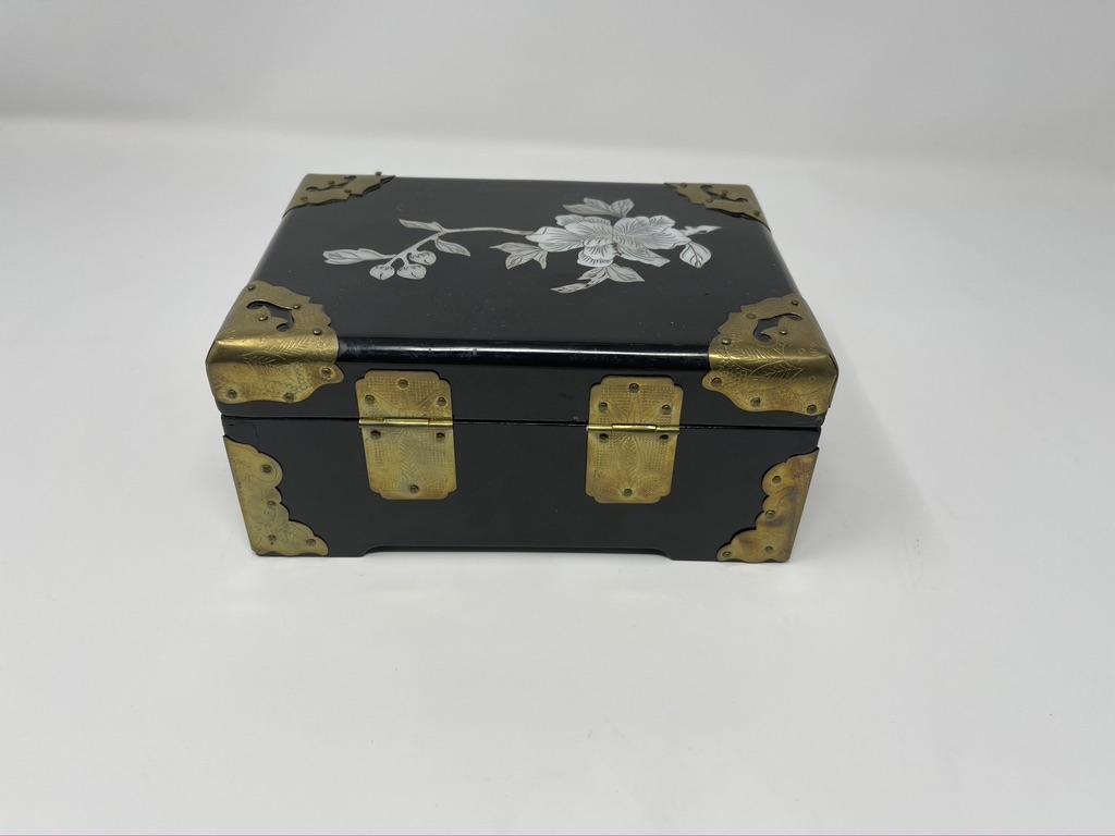 Small Chinese lacquered jewelry box with red lining