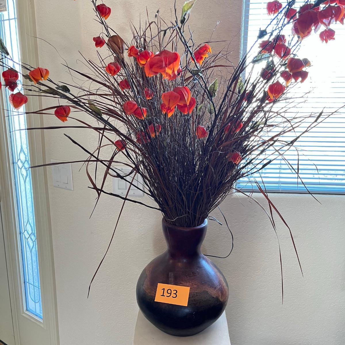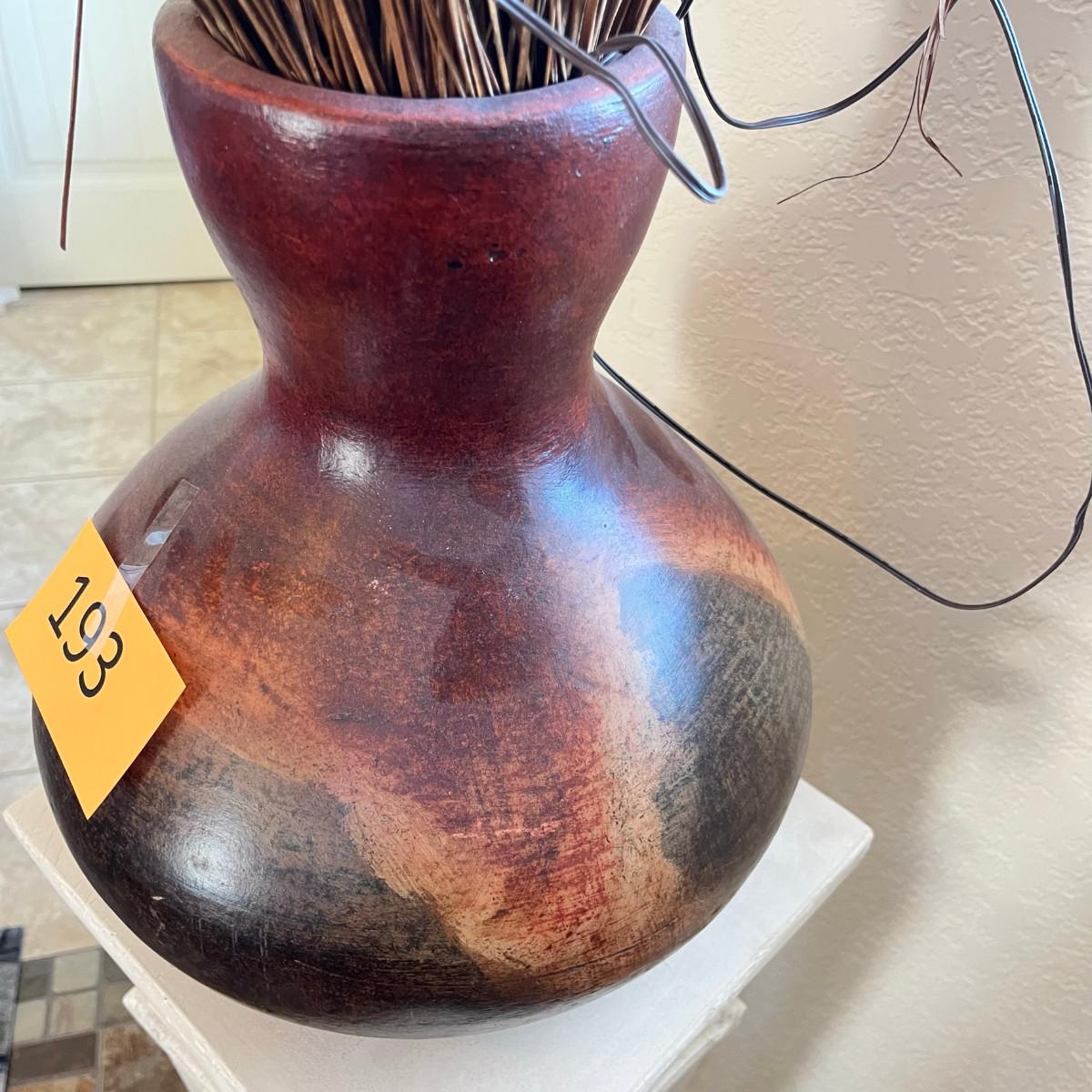 Mexican made vase. About 12" tall + floral.