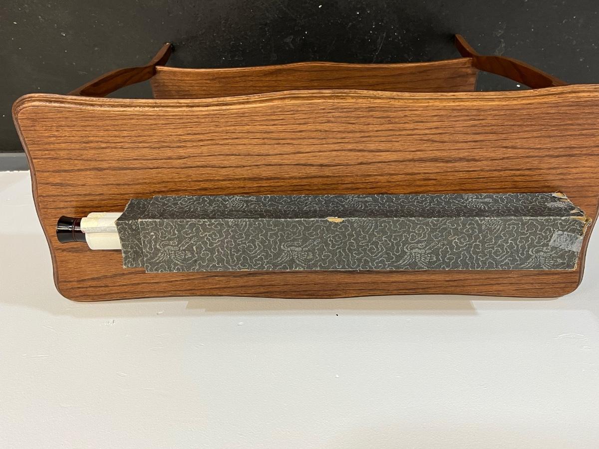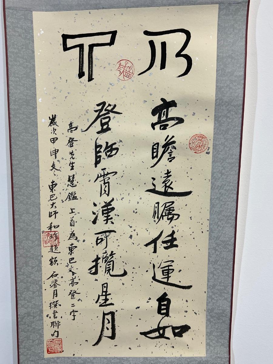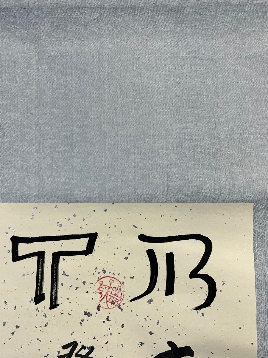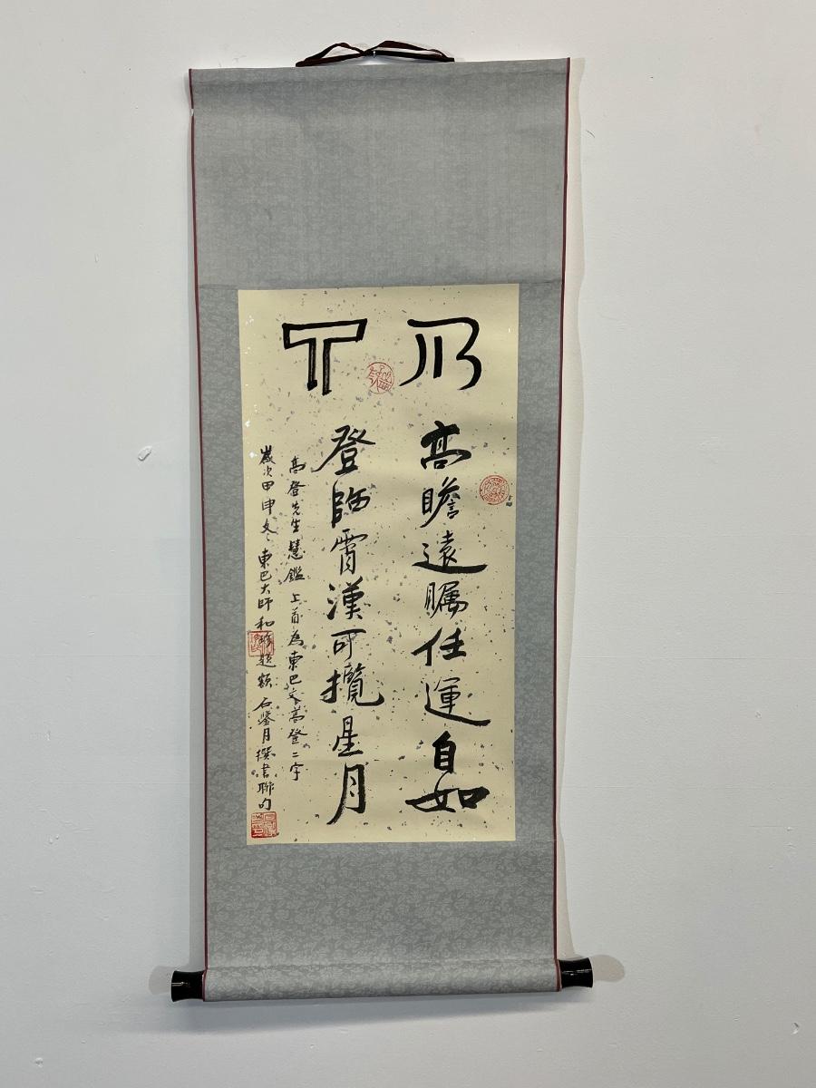 chinese light grey silk scroll w/ tb writing 16"x41"