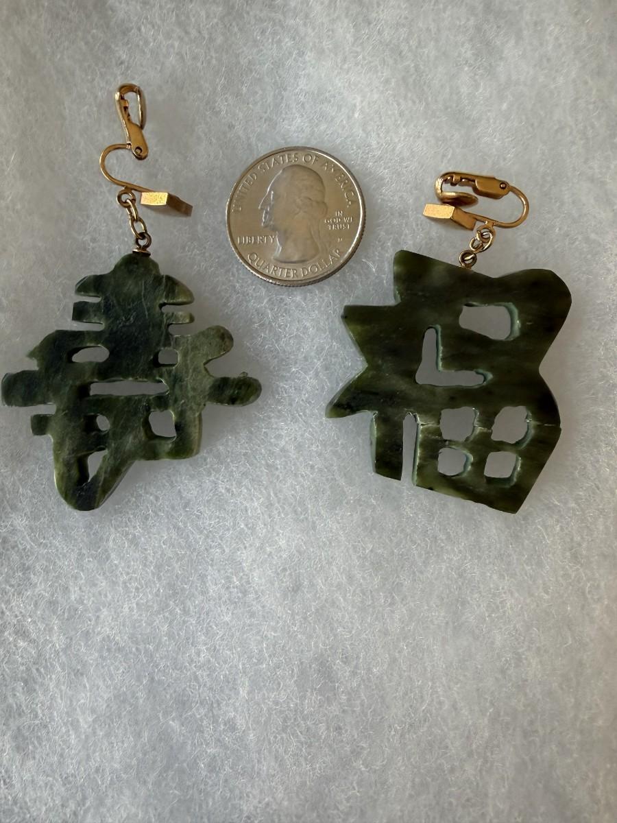 Chinese Longevity Clip Earrings