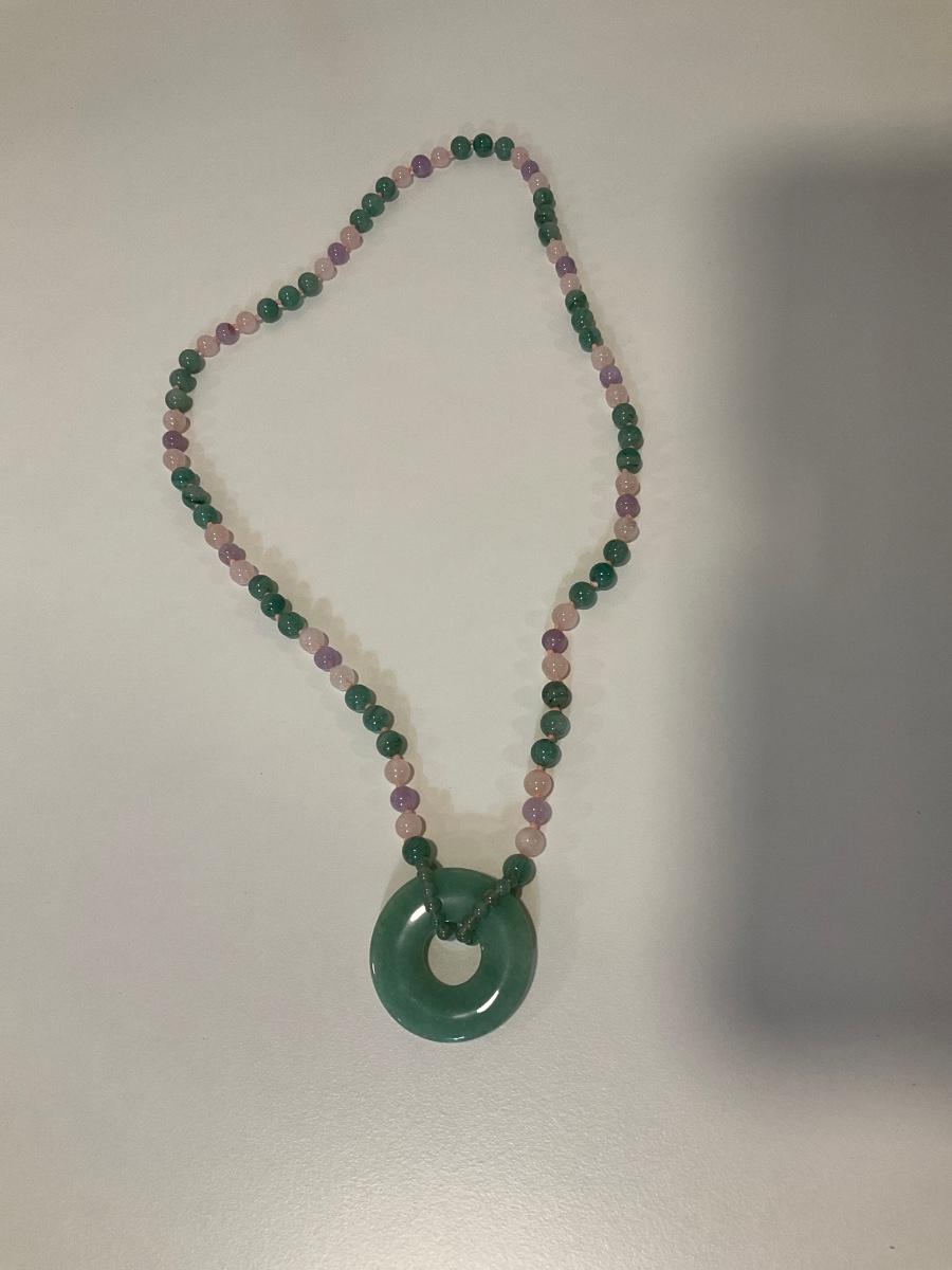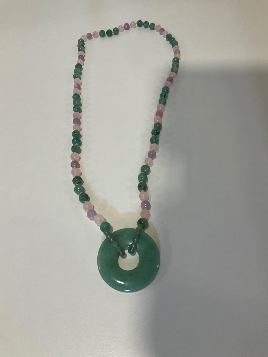 It was sold to owner as real Jade and verified by Jeweler that it is Jade and Rose Quartz