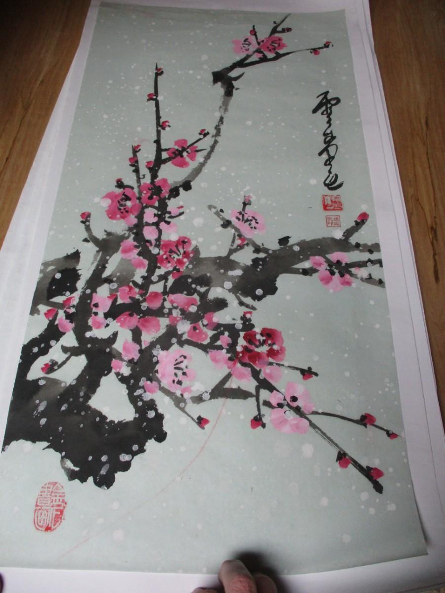 Chinese Painted Art On Rice Paper Approx 29 1/2" x 13 1/2" - A
