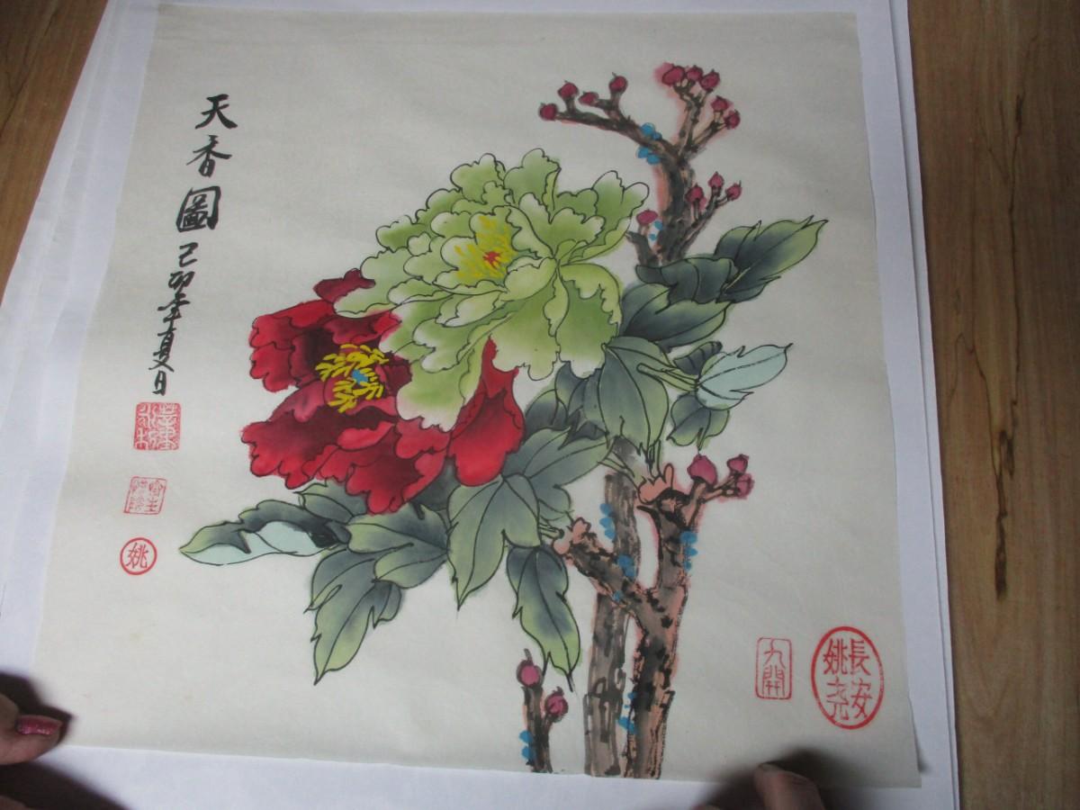 Chinese Painted Art On Rice Paper 12 3/4" x 13" (2) - A