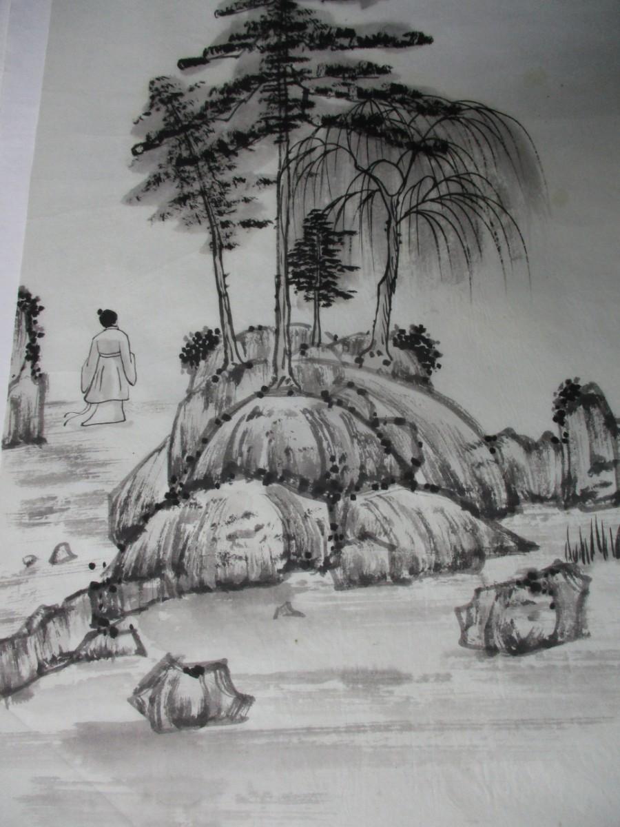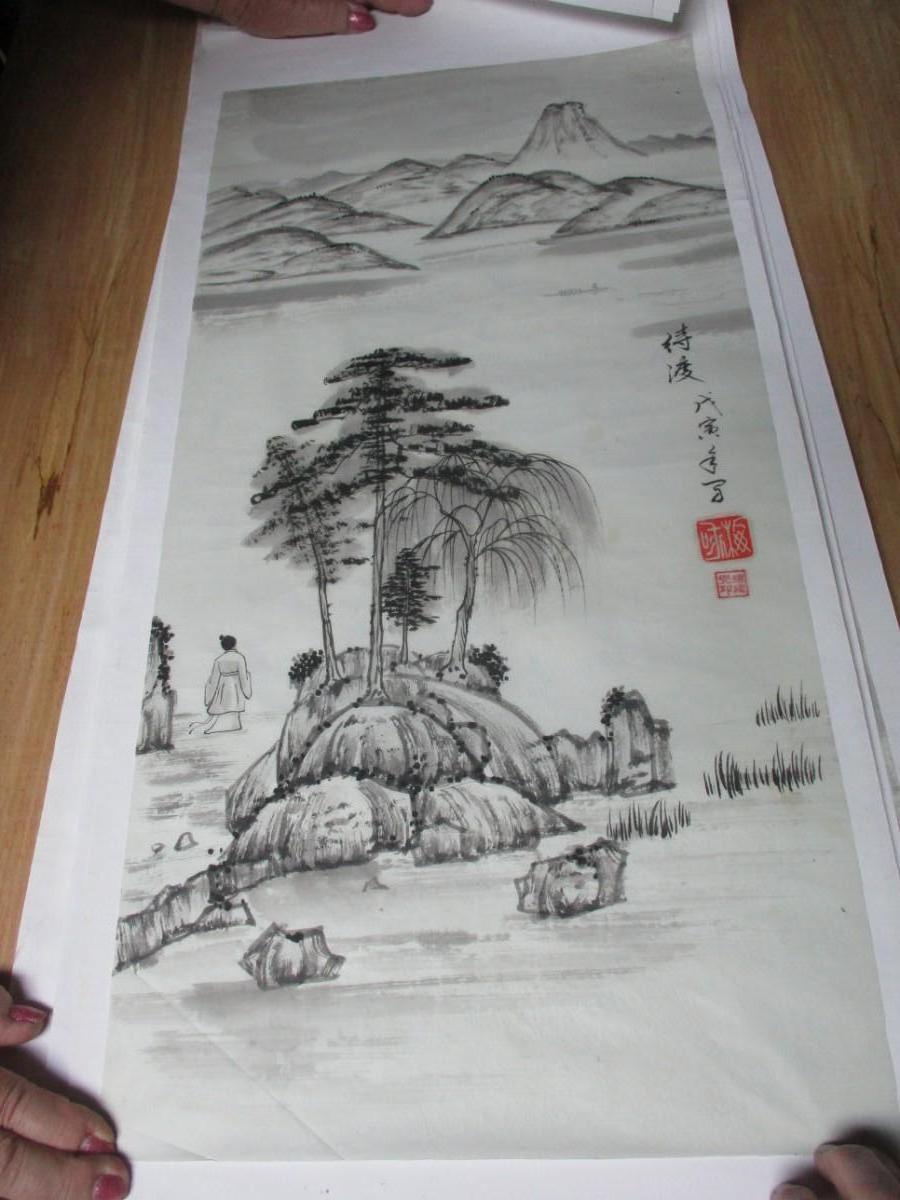 Chinese Painted Art On Rice Paper Approx 26 1/4" x 13" (3) - A