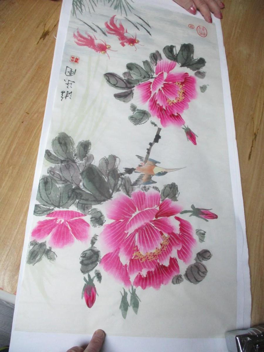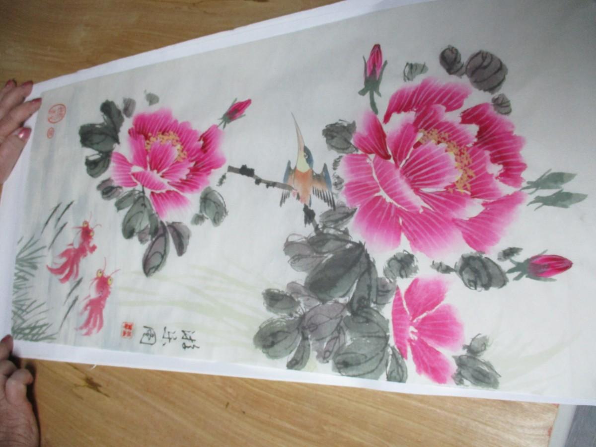 Chinese Painted Art On Rice Paper Approx 26" x 13 1/2" (14) - A