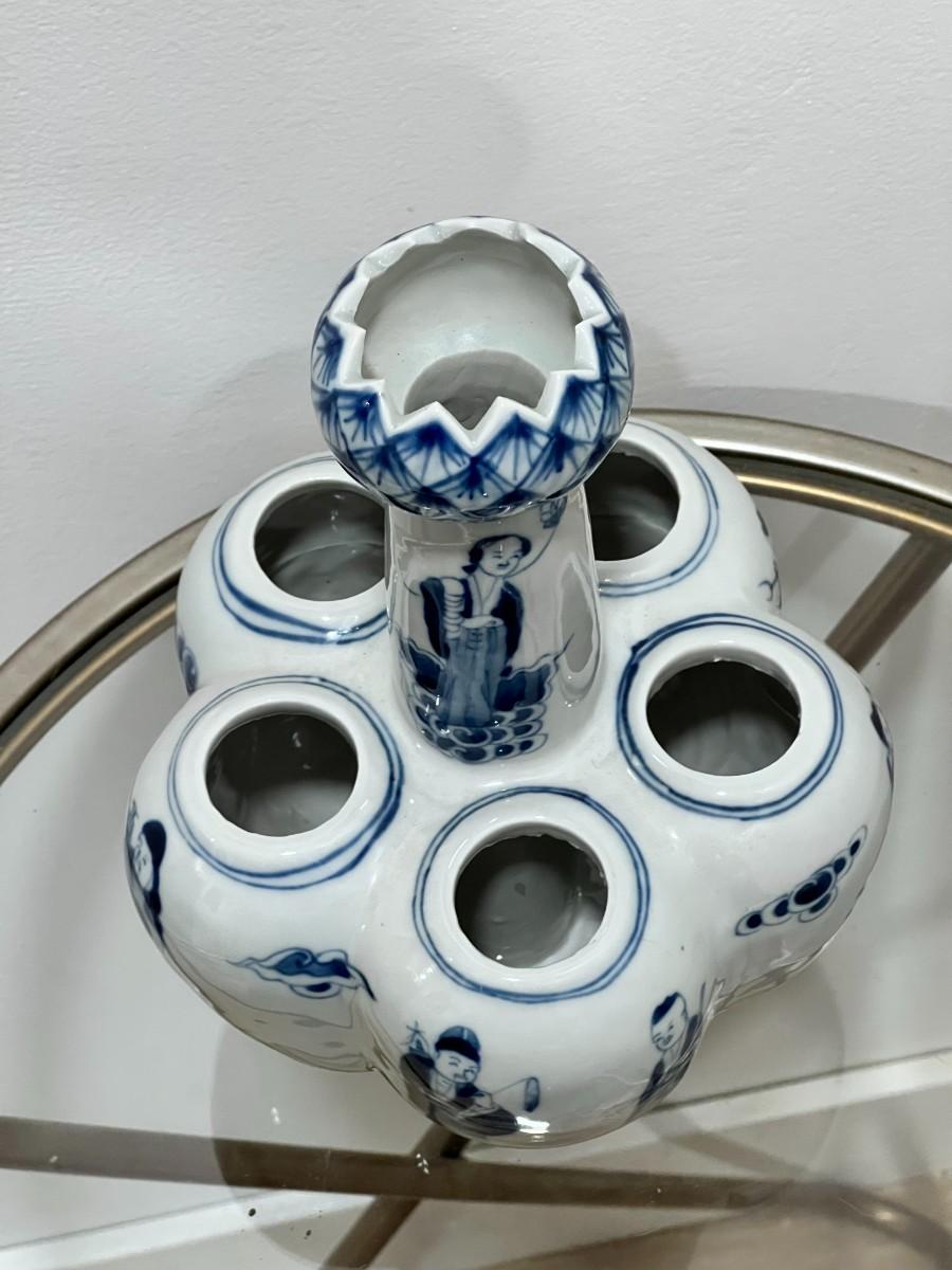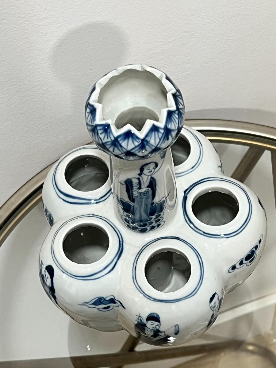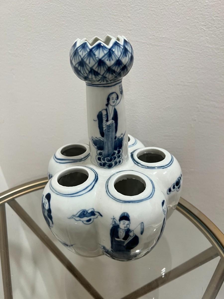 Chinese Porcelain Bulb Vase with People and Lotus Top with 6 holes