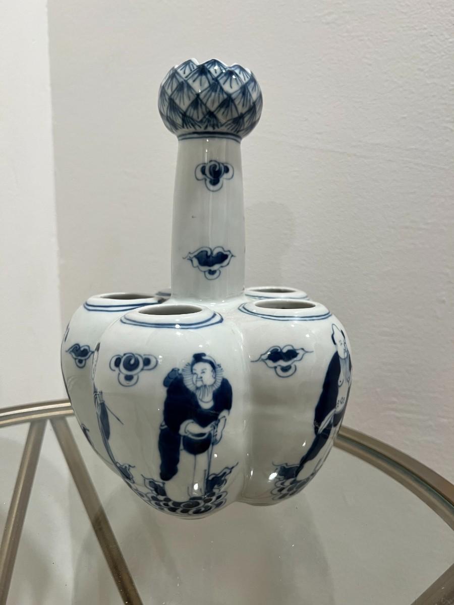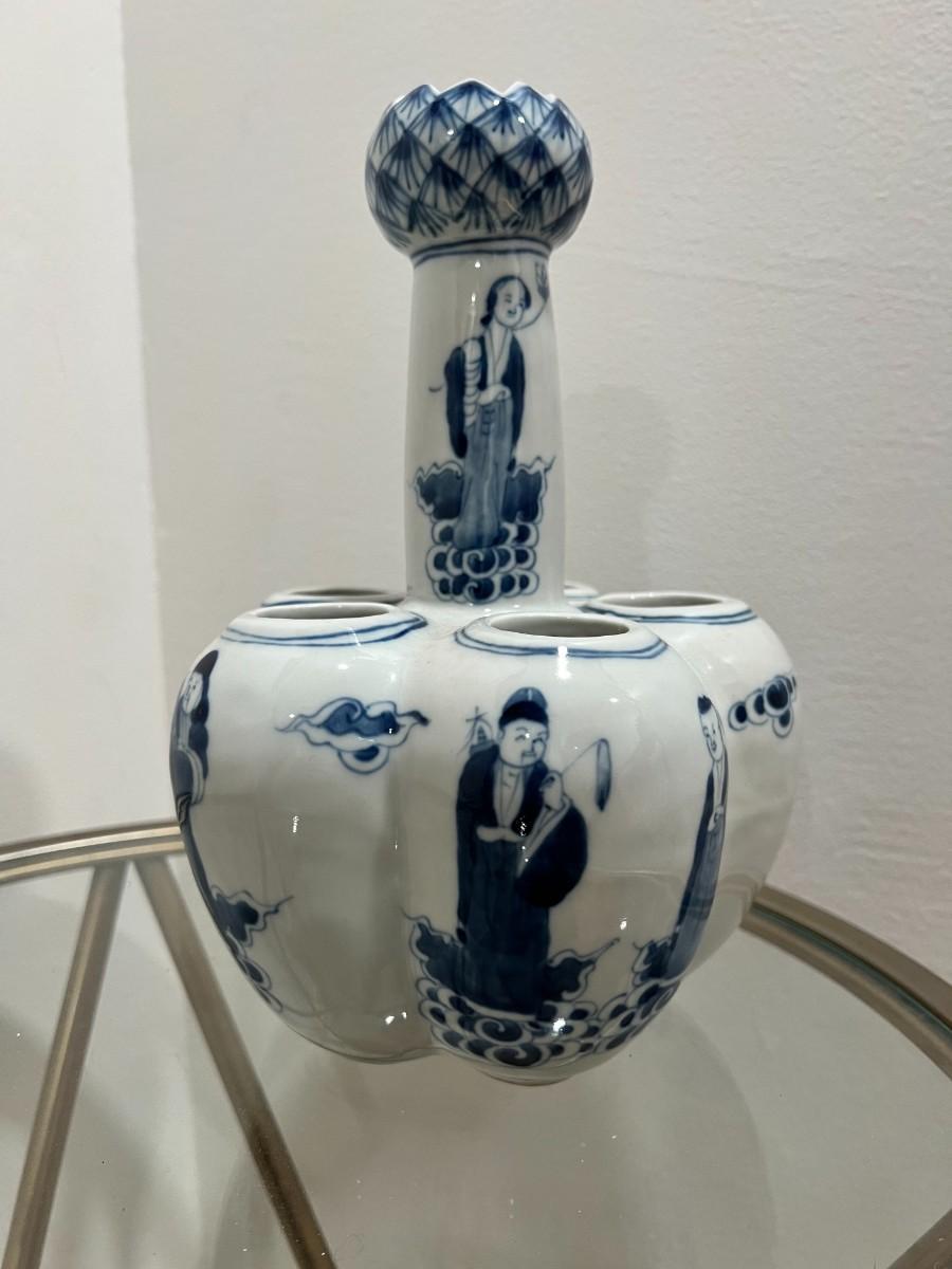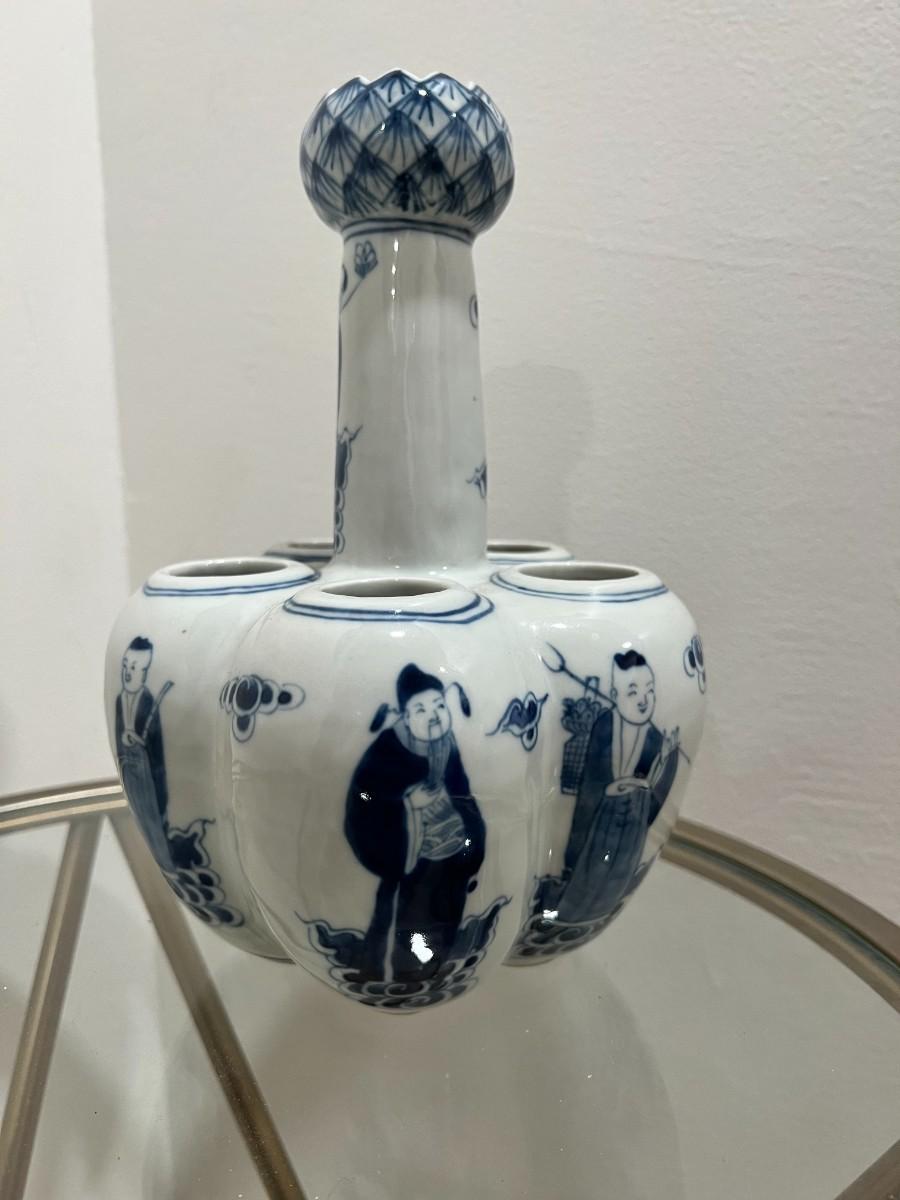 Chinese Porcelain Bulb Vase with People and Lotus Top with 6 holes
