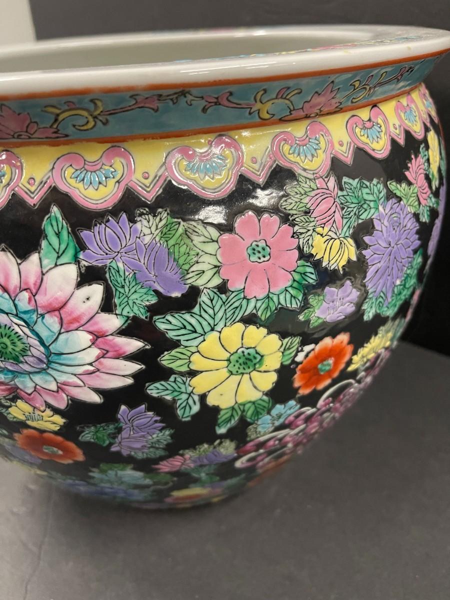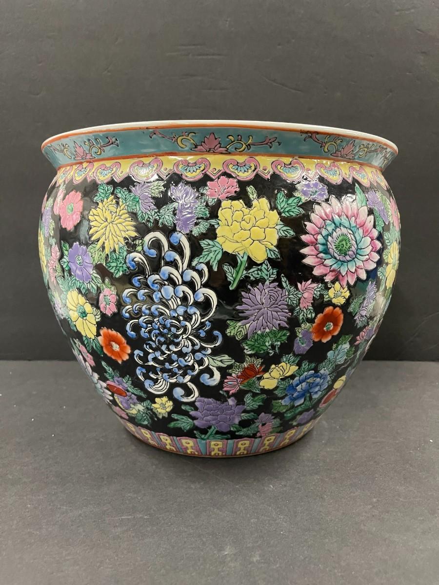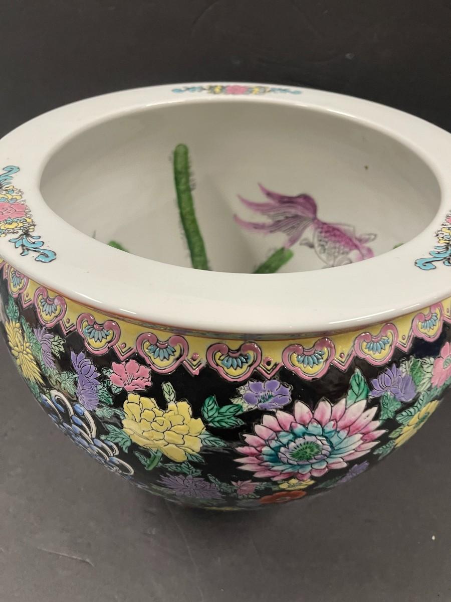 Chinese porcelain fishbowl planter. 12 1/2" x 10" high. Very good condition.