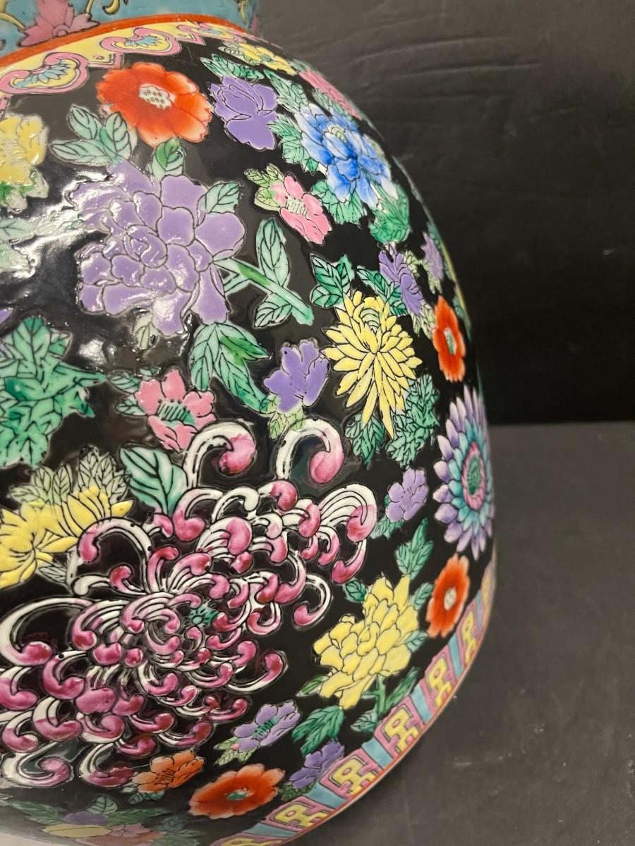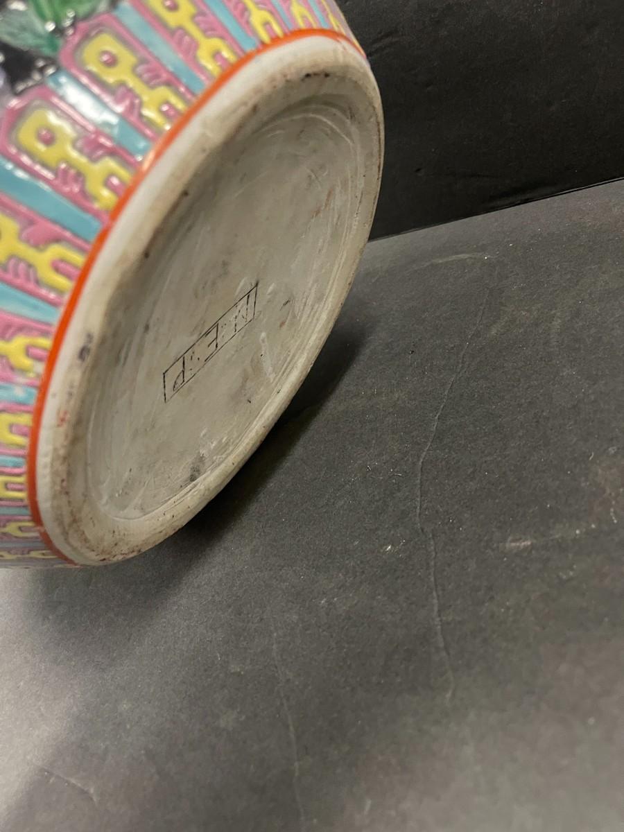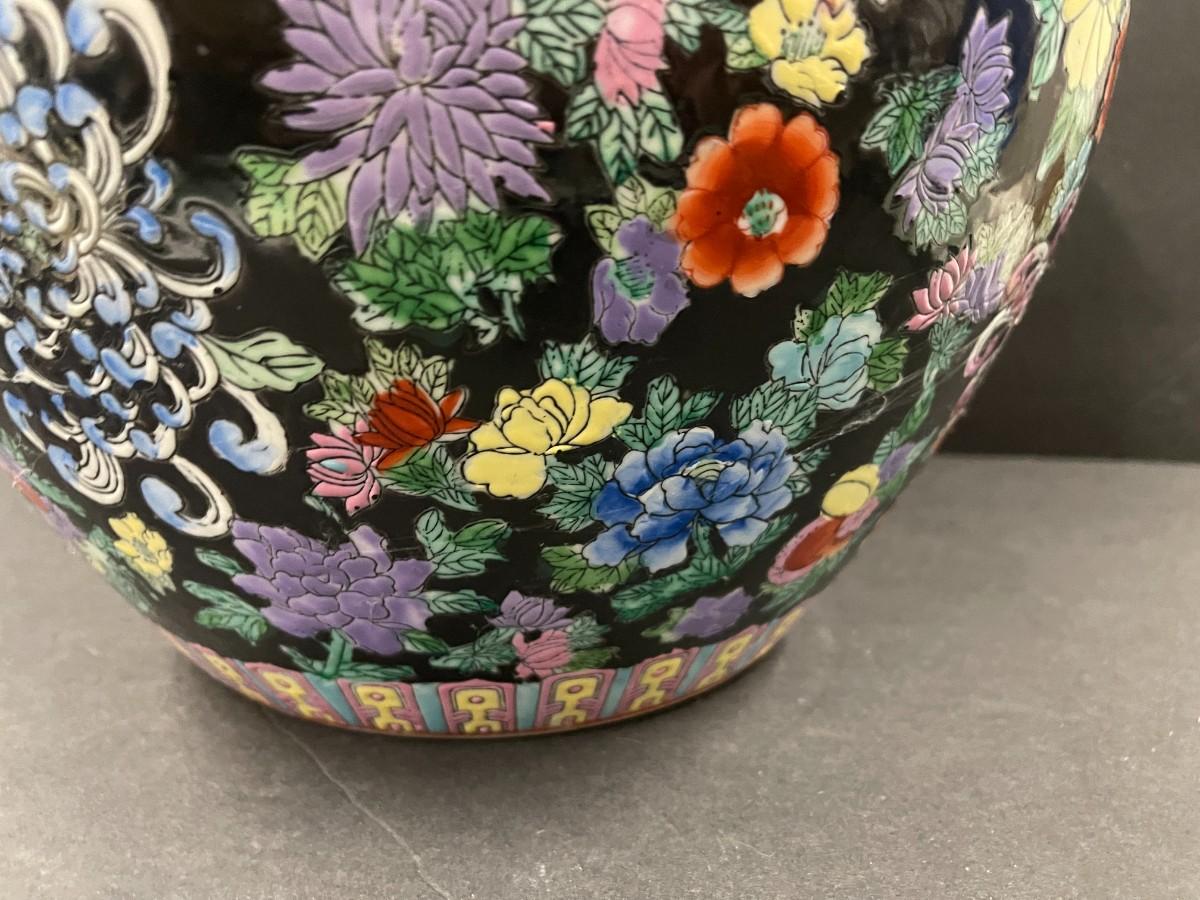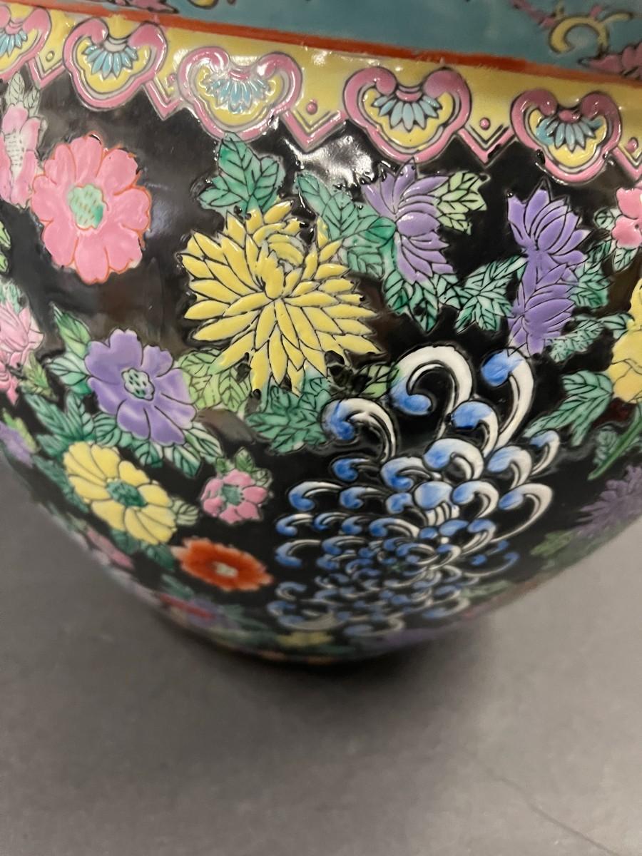 Chinese porcelain fishbowl planter. 12 1/2" x 10" high. Very good condition.