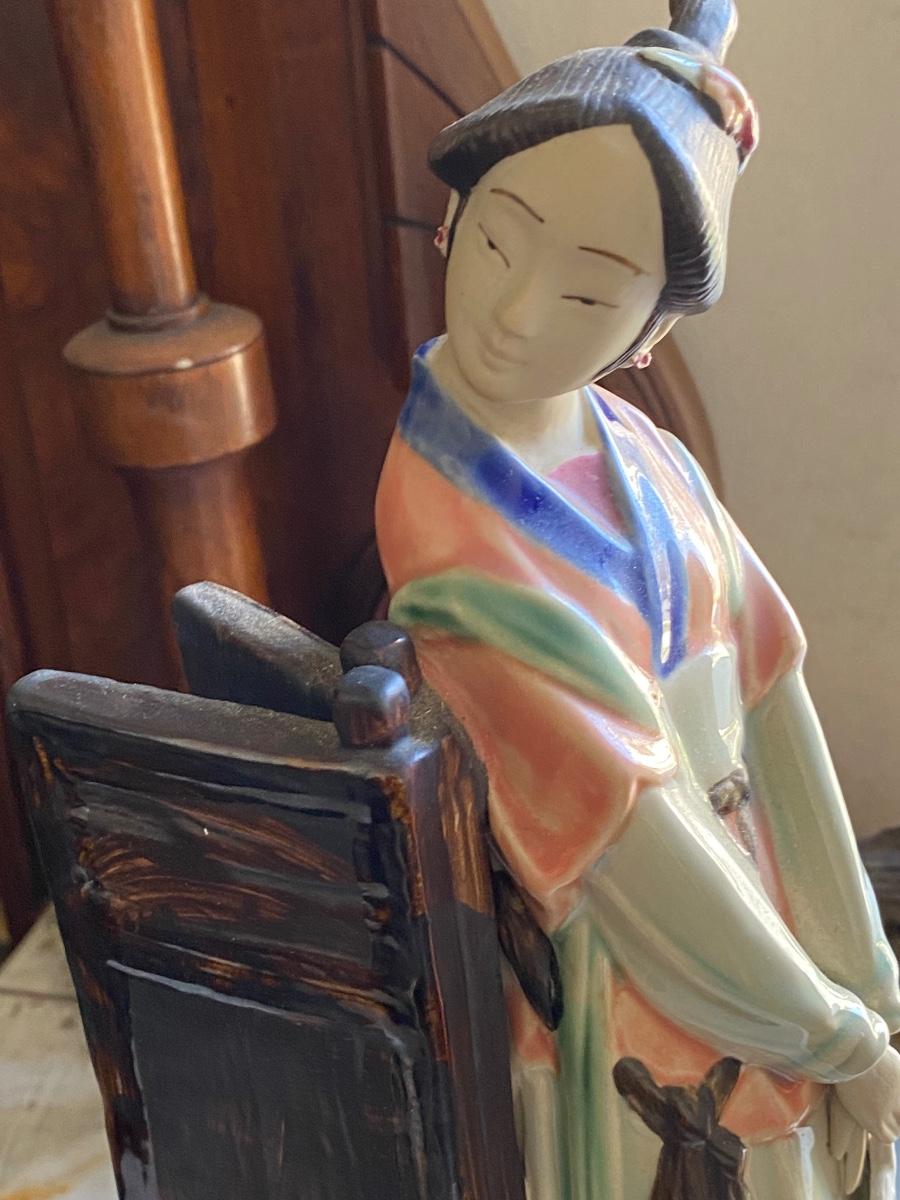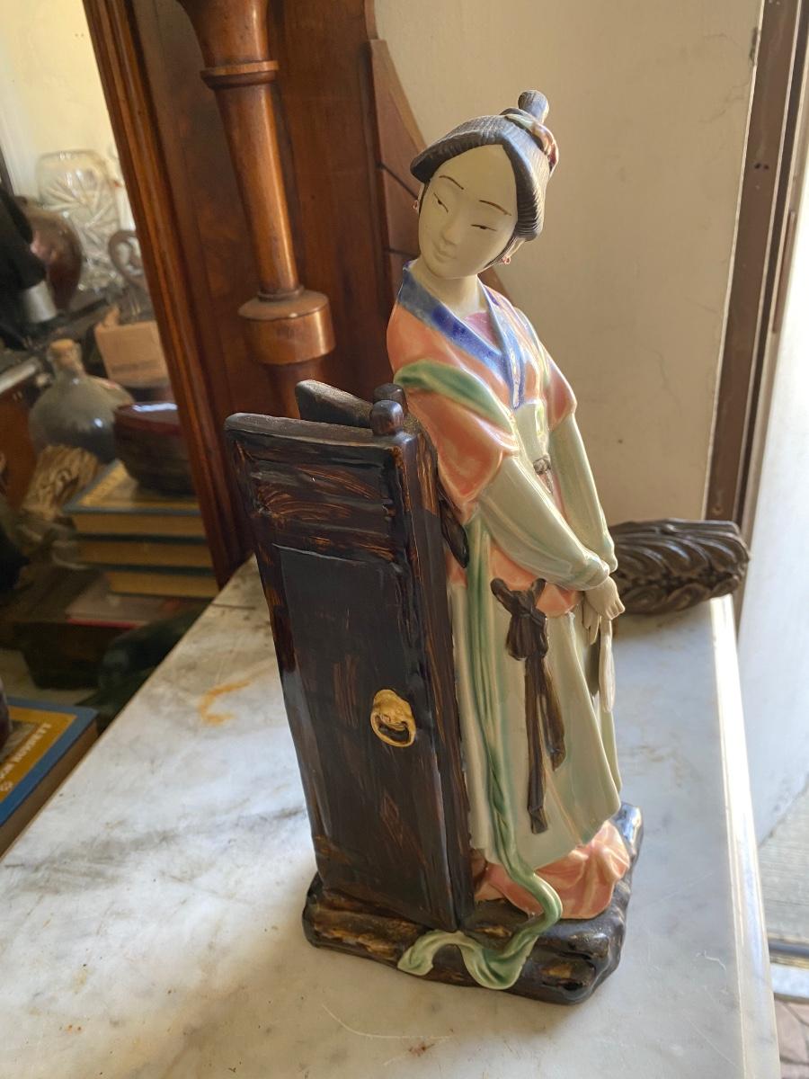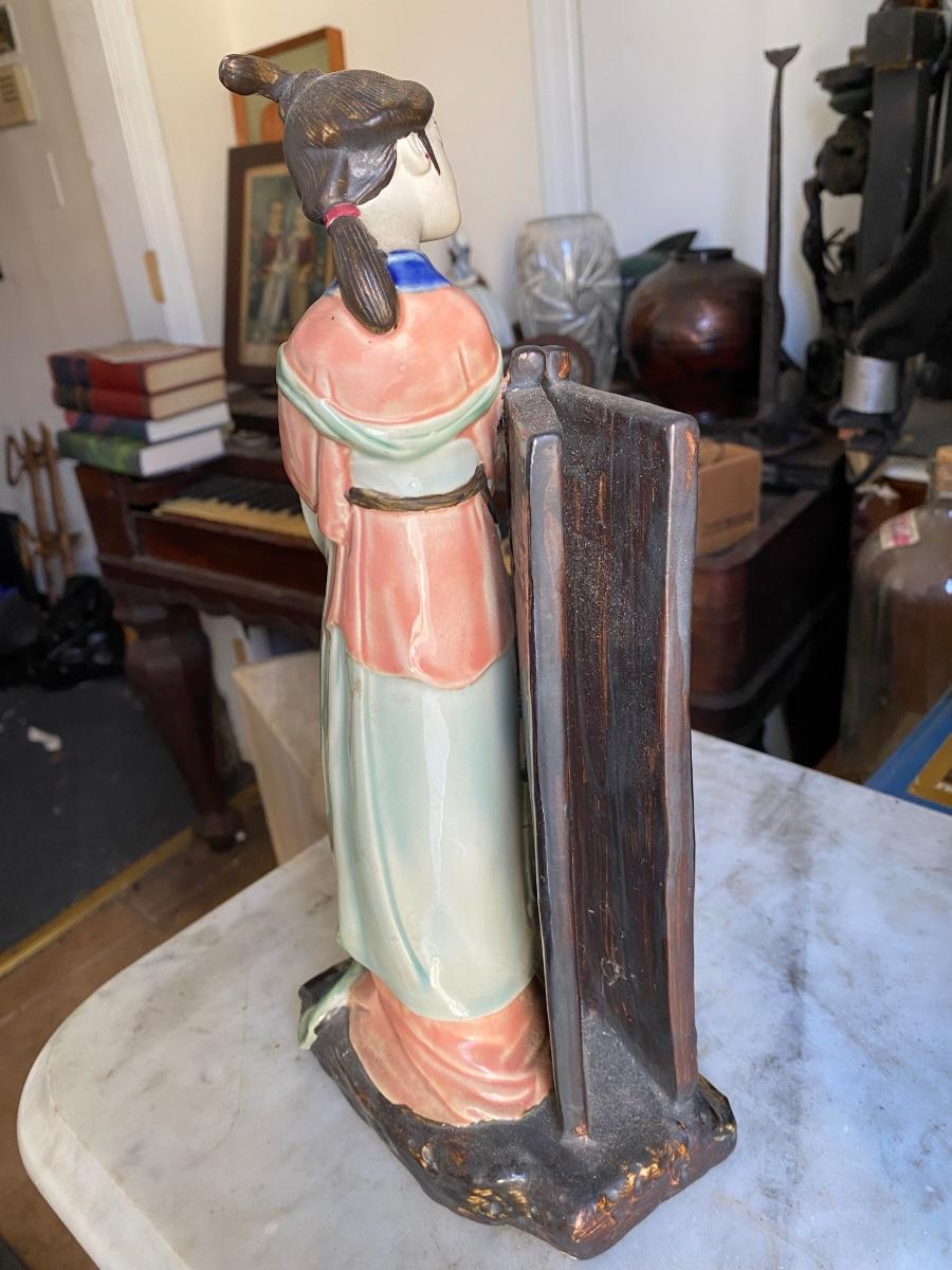 Chinese Porcelain Shiwan Geisha Waiting By Door Asian Figurine 13” Tall,6" wide. Looks to be in perfect condition.