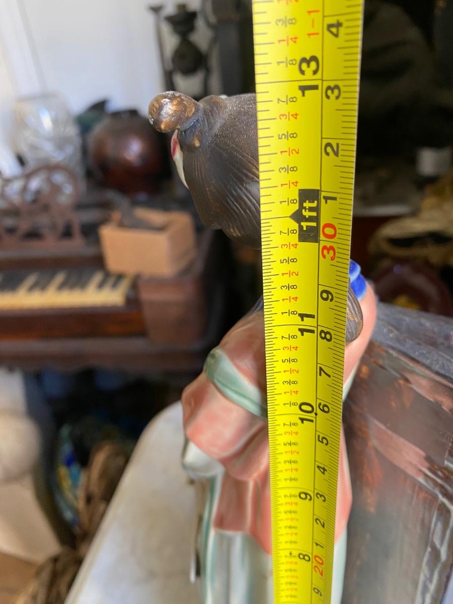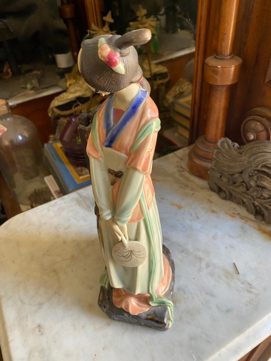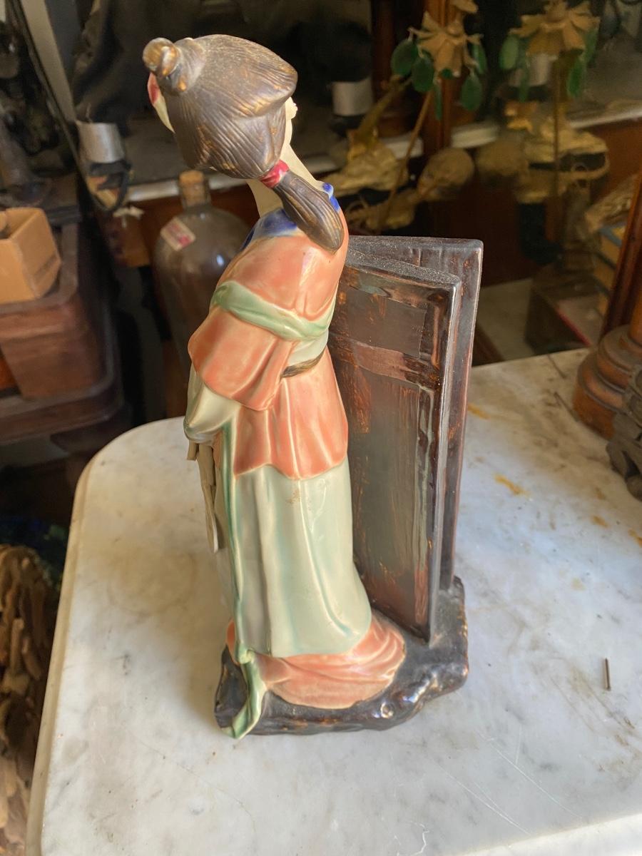 Chinese Porcelain Shiwan Geisha Waiting By Door Asian Figurine 13” Tall,6" wide. Looks to be in perfect condition.