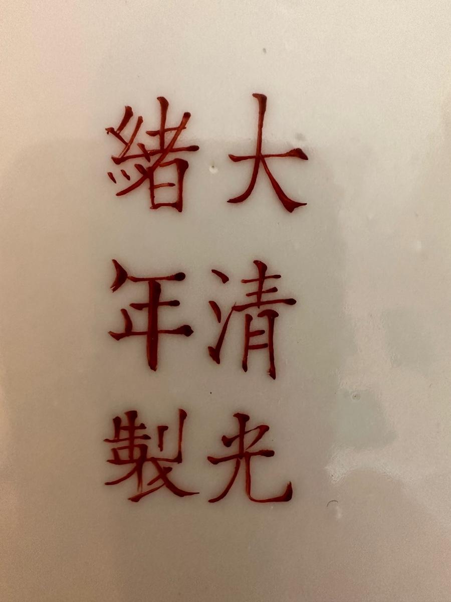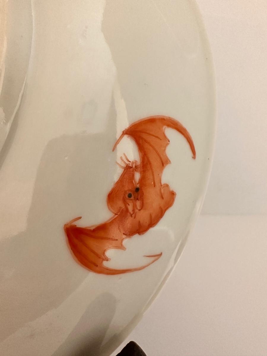 Intricate Decorated Chinese Porcelain Plate, Makers mark on back, Bat Decorated