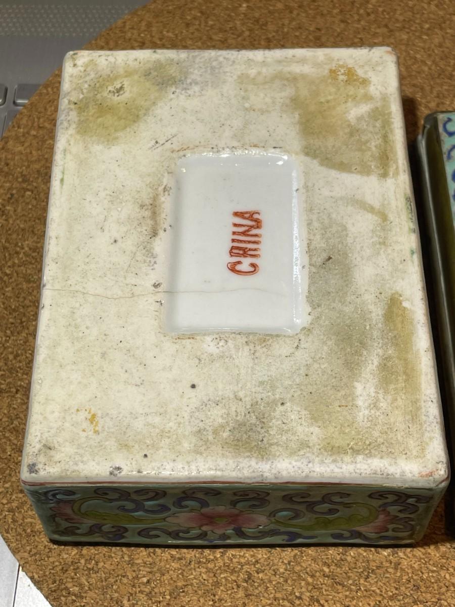 Chinese Republic Period Famille Verte Porcelain 1-Time Hinged Lidded Trinket Box w/Many Stress Cracks as Pictured. $10 Domestic Shipping.