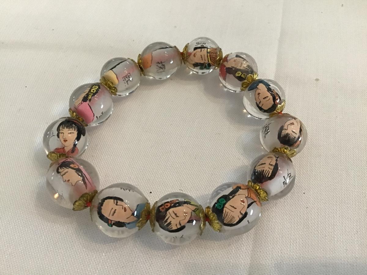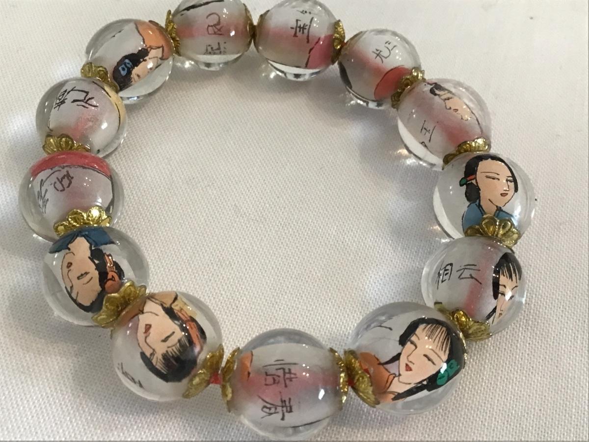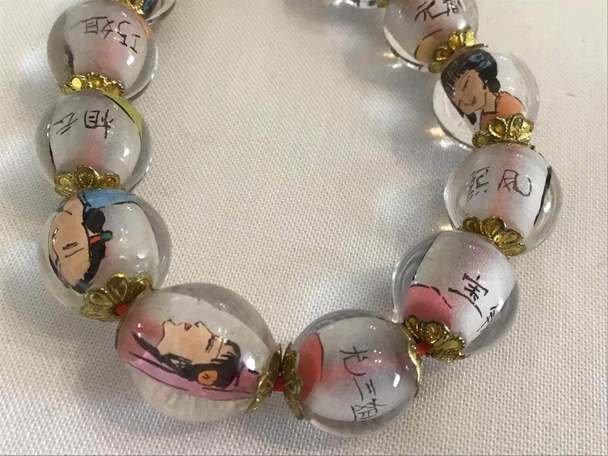 Chinese Reverse Glass Painted Geisha Beads Vintage