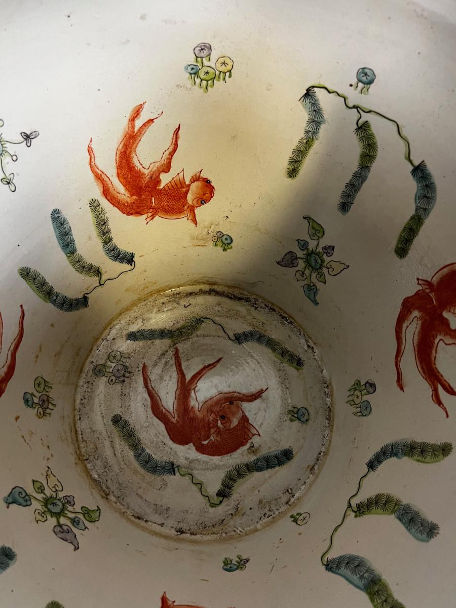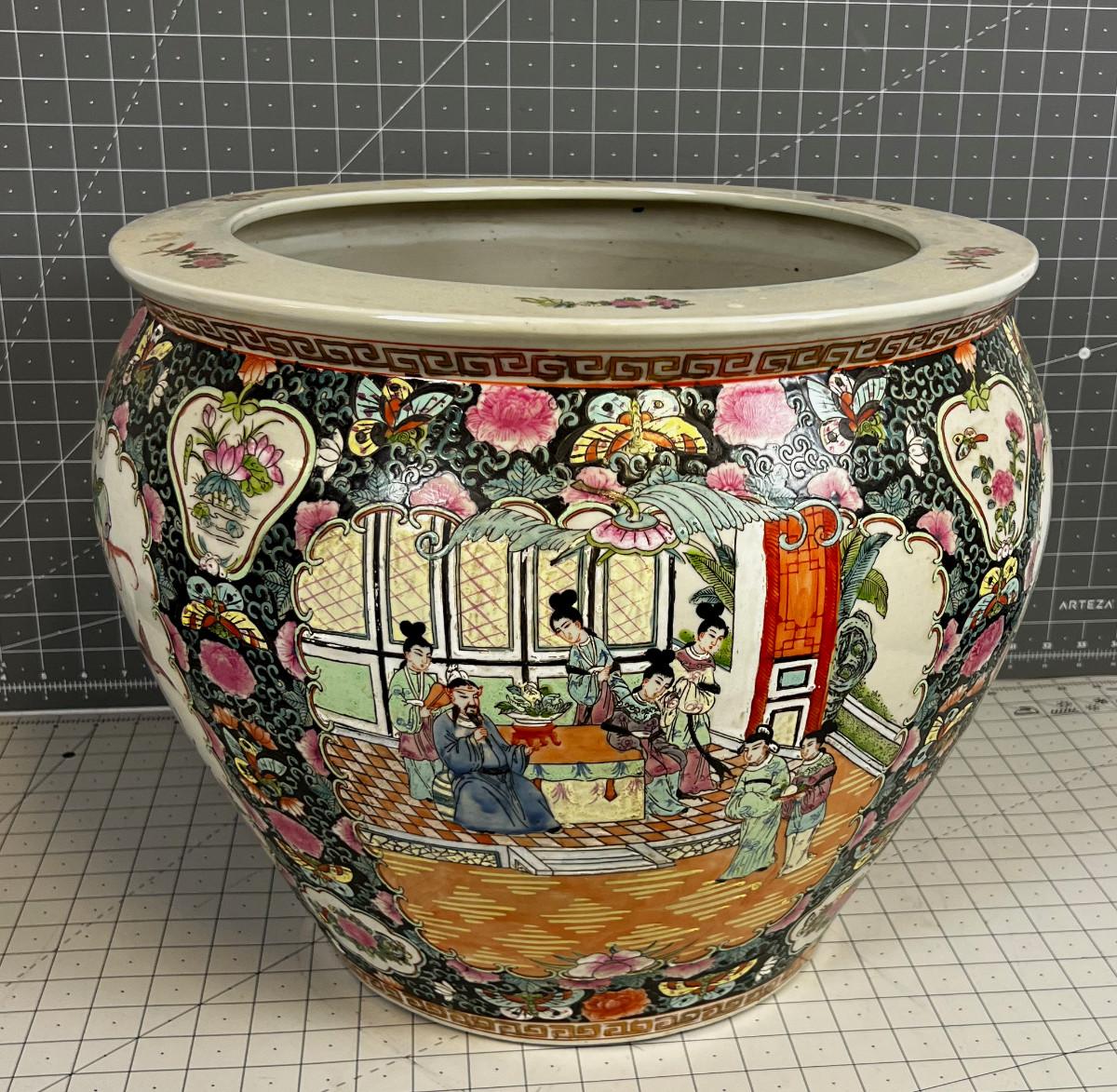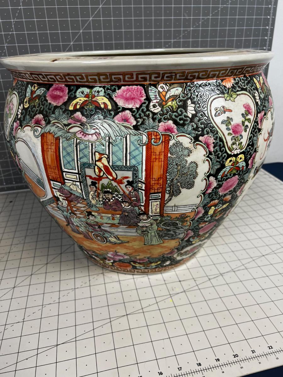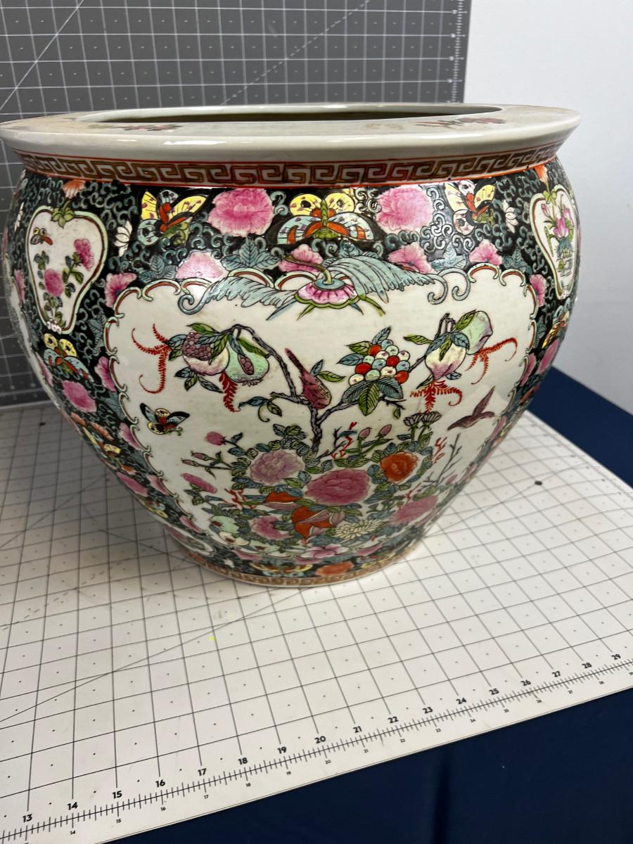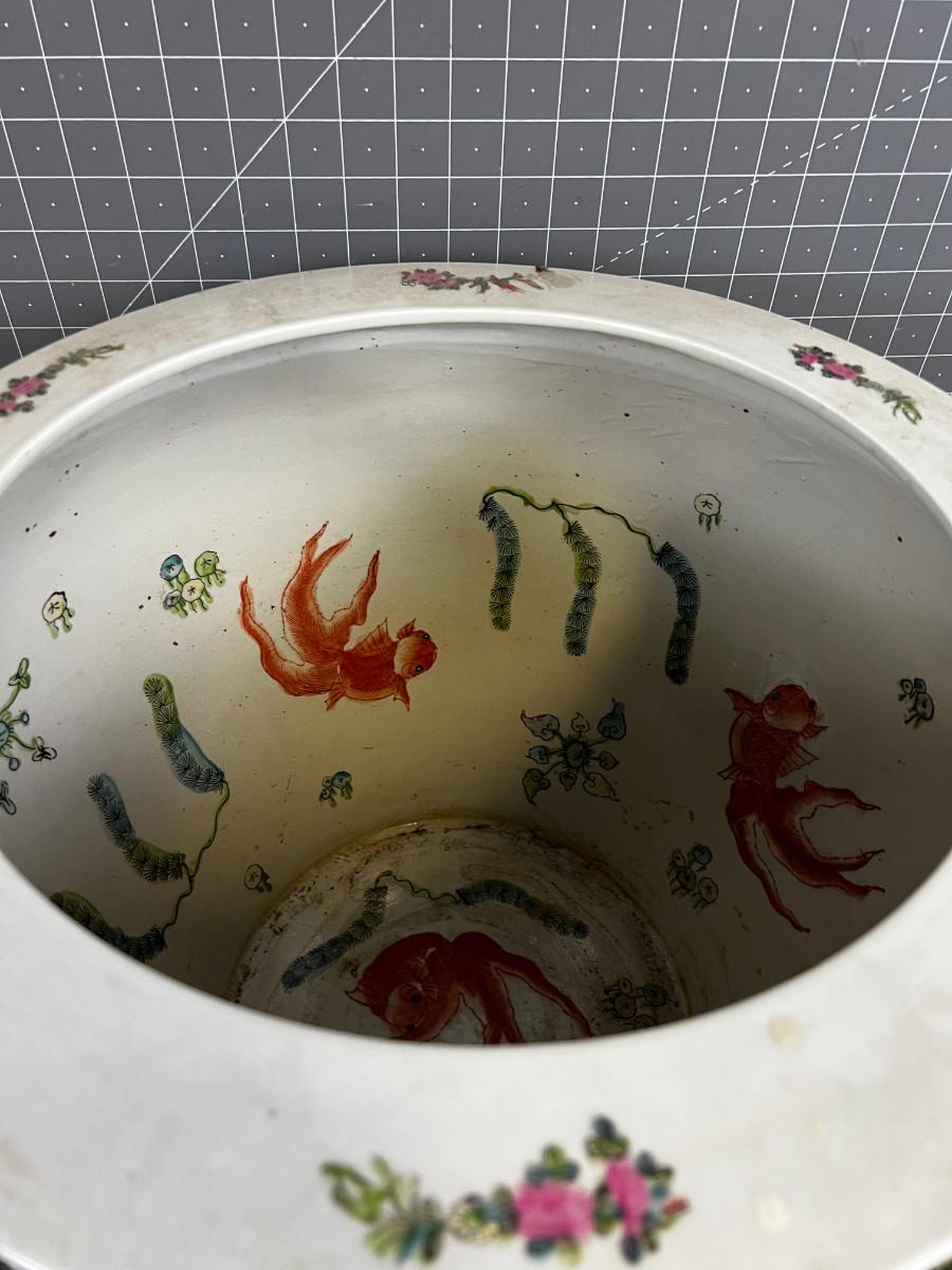 Chinese Rose Famille Koi Jar Planter, LARGE