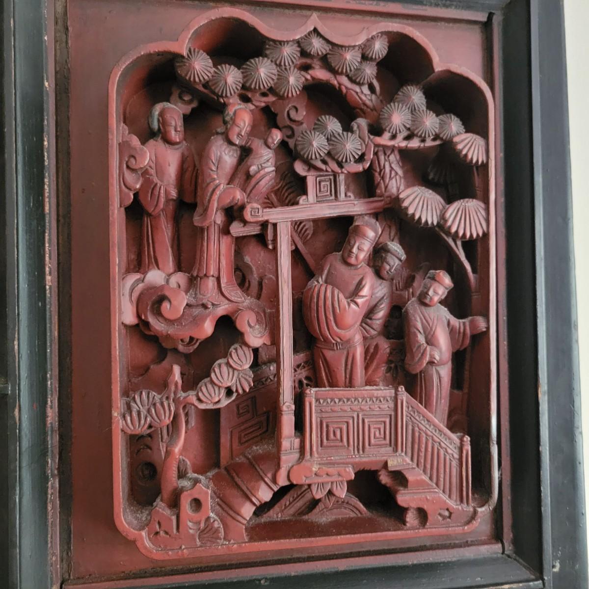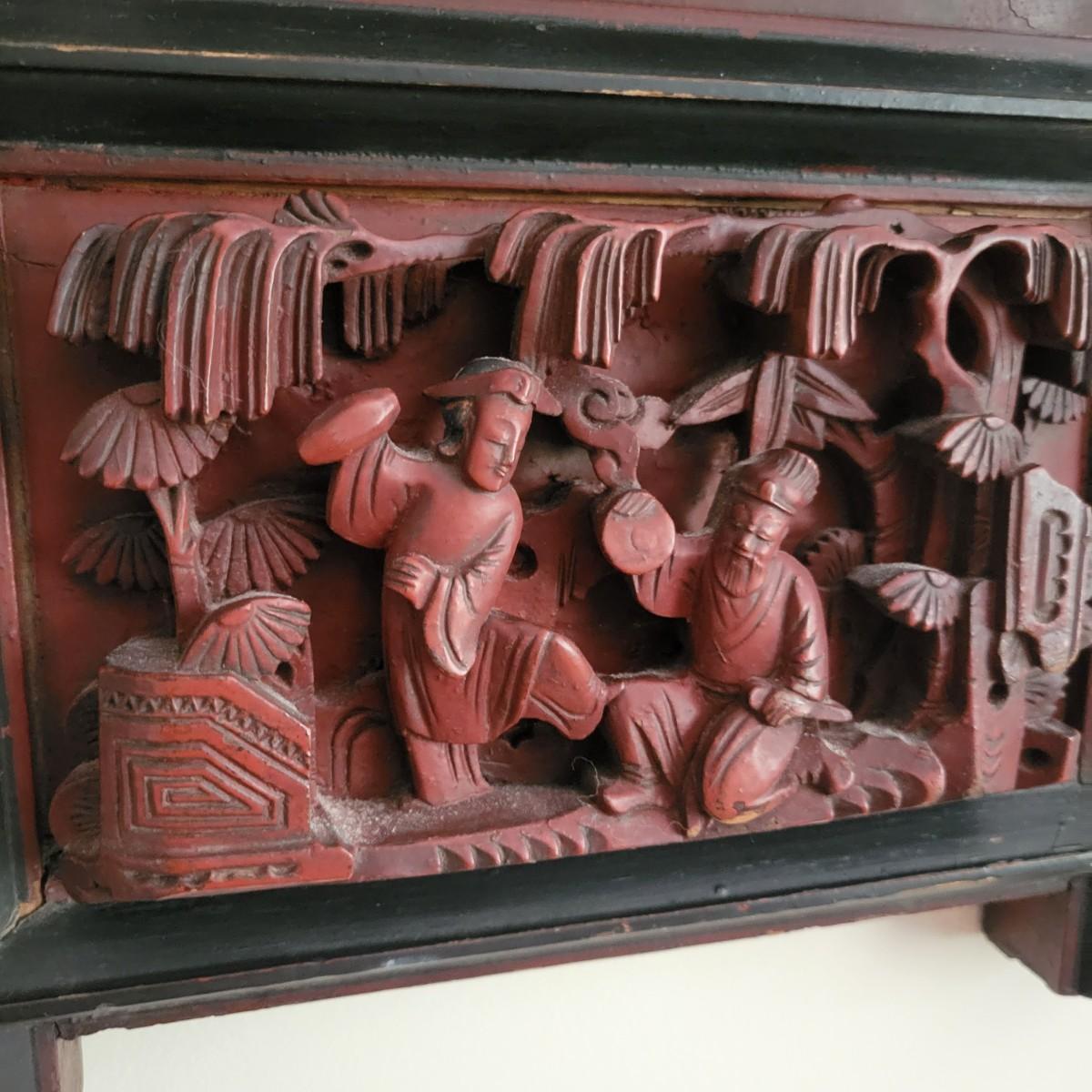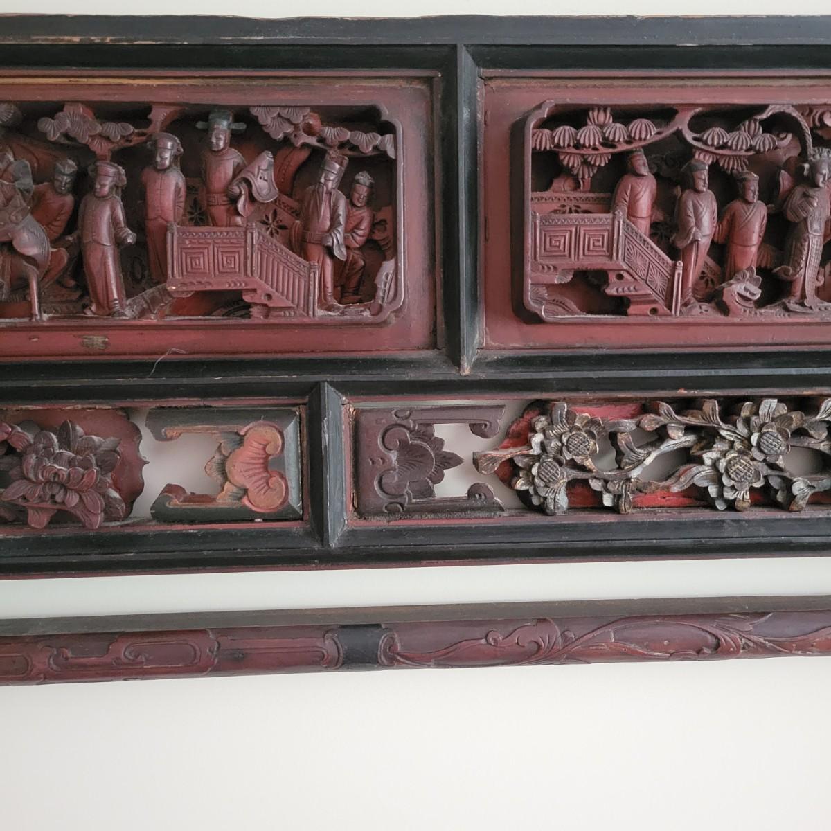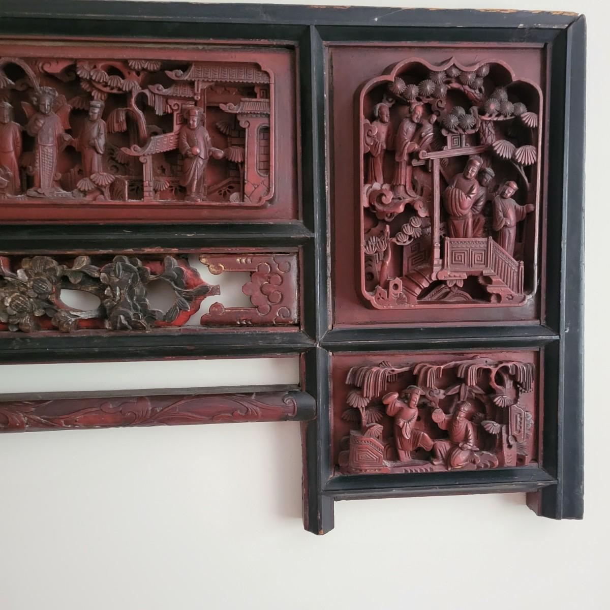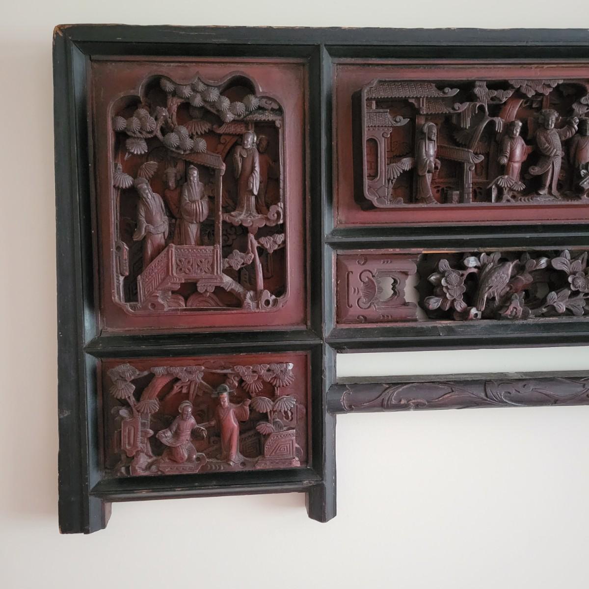 An exquisitely carved Oriental panel hand crafted from rosewood. This piece features 10 intricately carved panels and appears to be old. The bar in the middle could be used for hanging tapestries but is not removable. It measures approximately 78" x 2.5" x 18.5"H amd the horizontalbar measures approximately 58" in length. Local pickup only. Check out our Sterling Transitions You Tube channel for a nice video showing all the details on this piece!