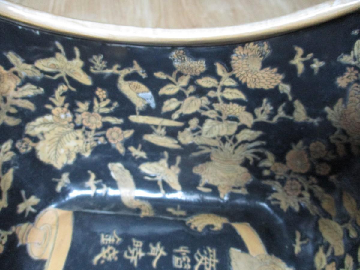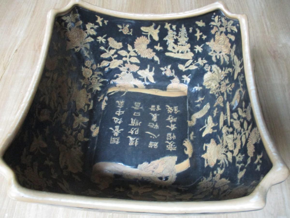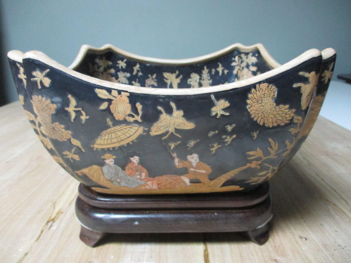 Chinese Scenic Character Porcelain Black Gold Bowl - C