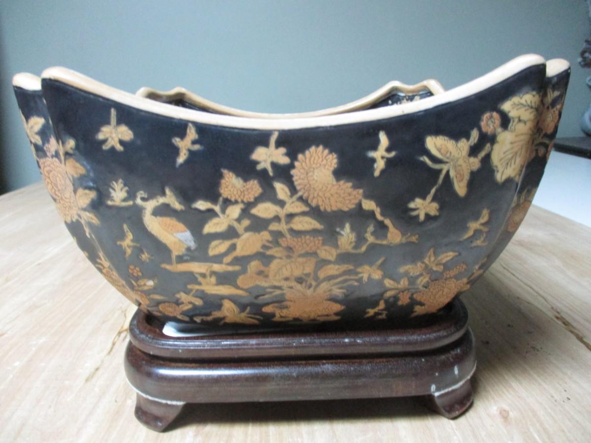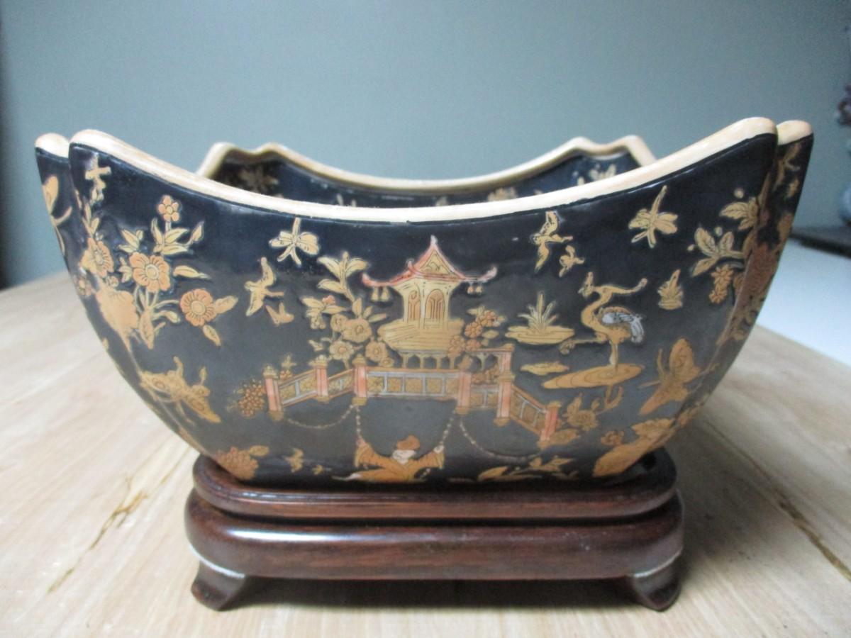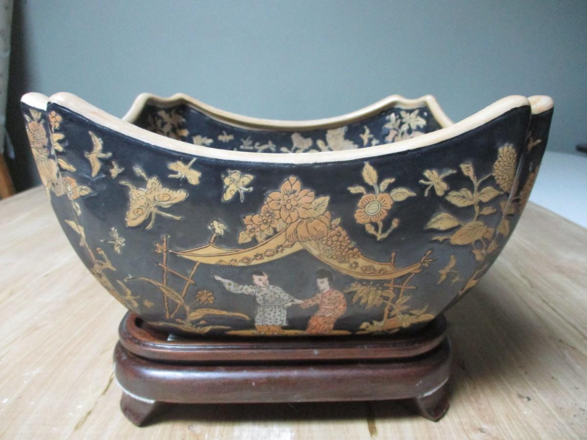 Chinese Scenic Character Porcelain Black Gold Bowl - C