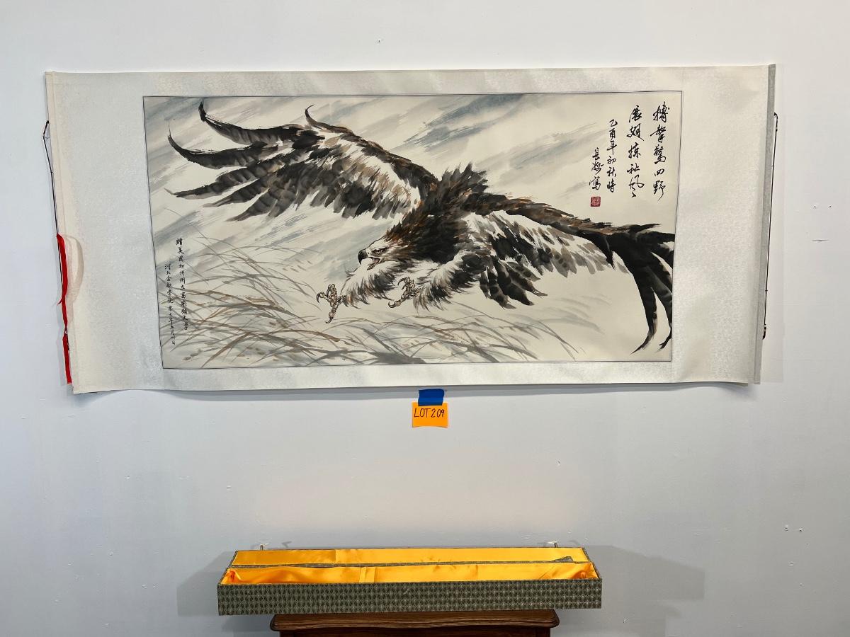 Chinese Silk Scroll W/ Eagle 32"x72"