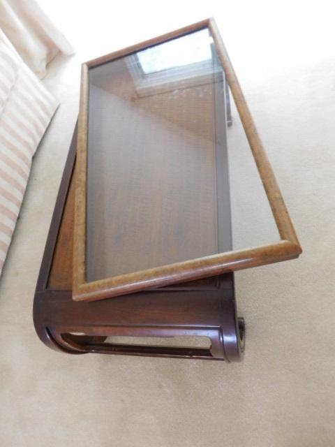 Chinese Solid Wood Opium Table with Glass Case Top 38"x20"x17" loft area has set of stairs to maneuver