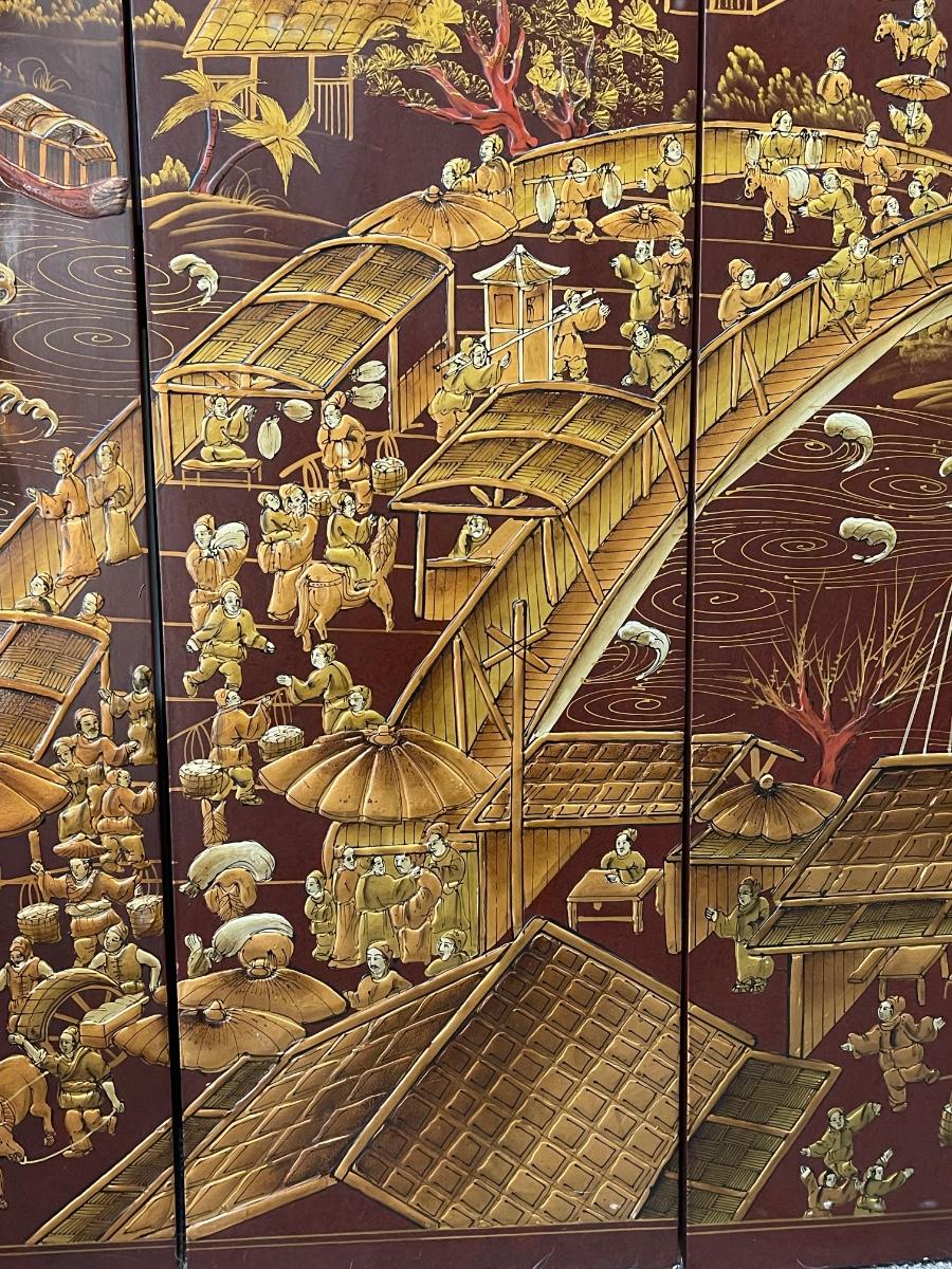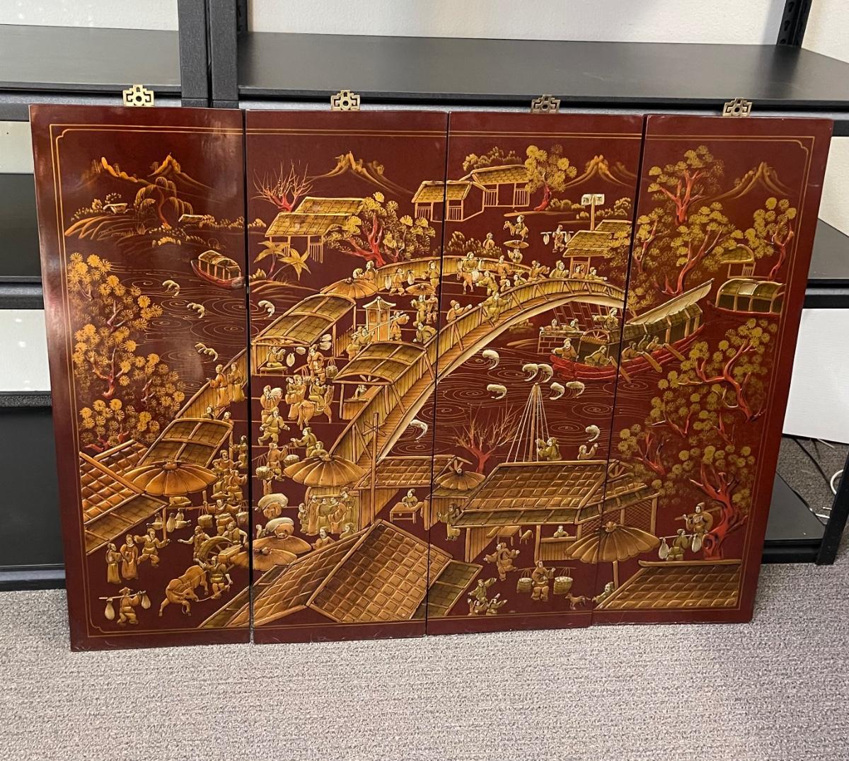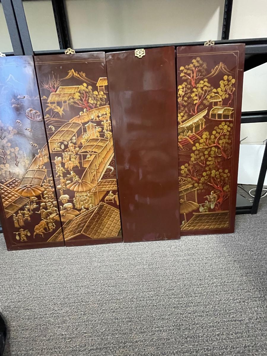 Chinese Spring Festival Chinoiserie Scenery Motif 4 painted wood wall panels Asian wall art