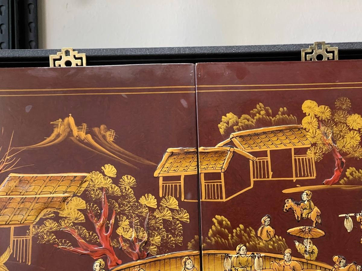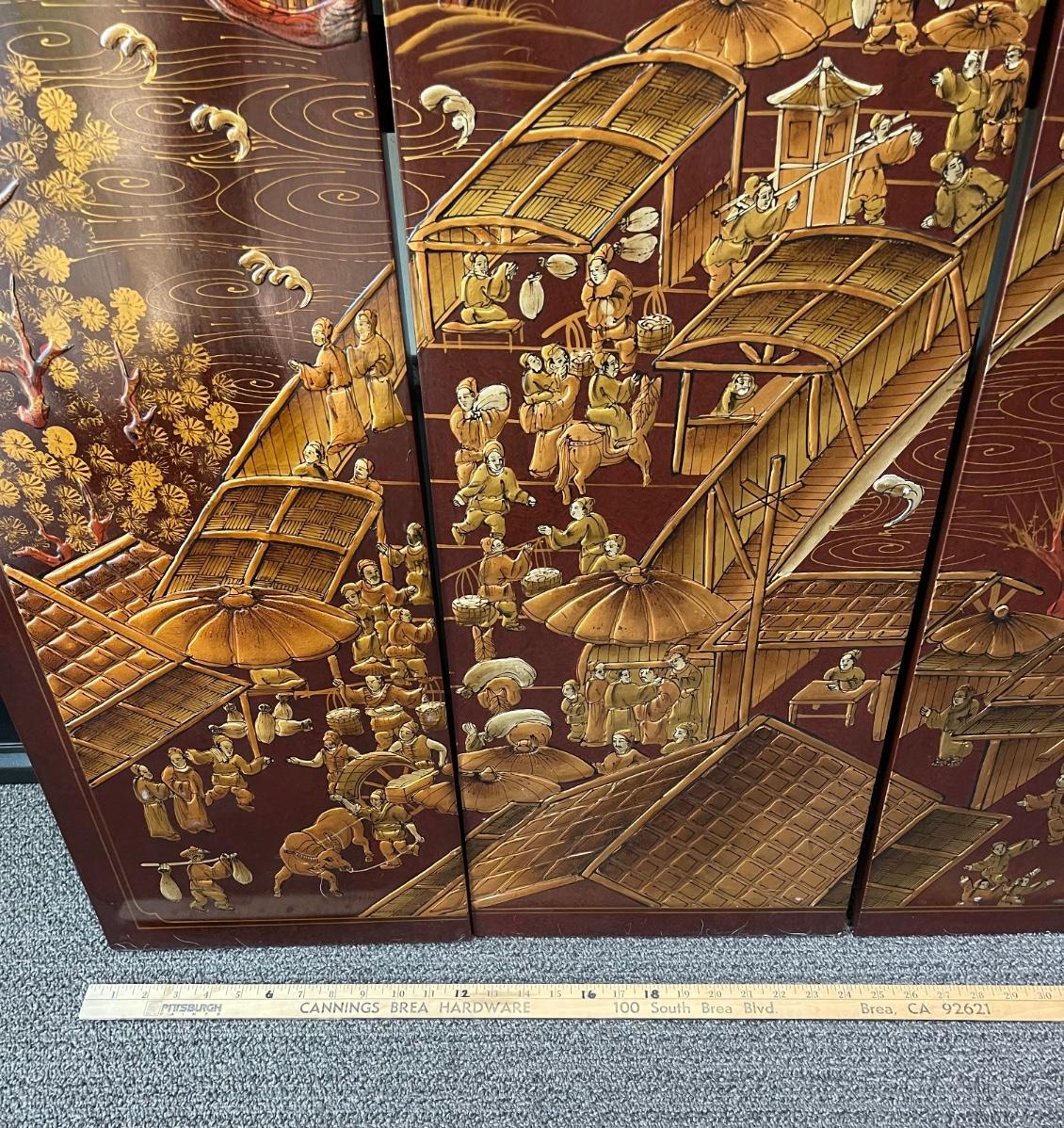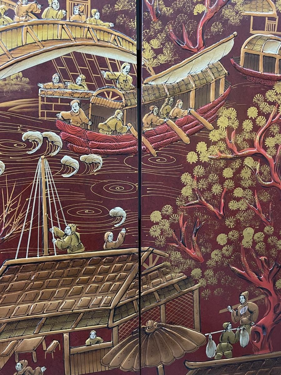 Chinese Spring Festival Chinoiserie Scenery Motif 4 painted wood wall panels Asian wall art