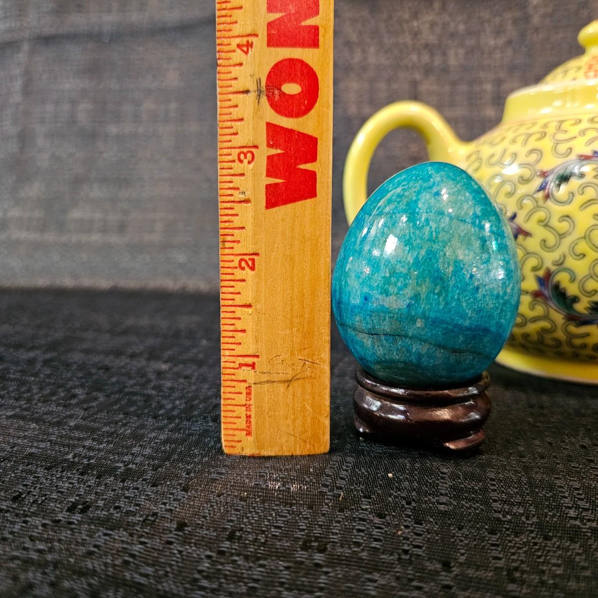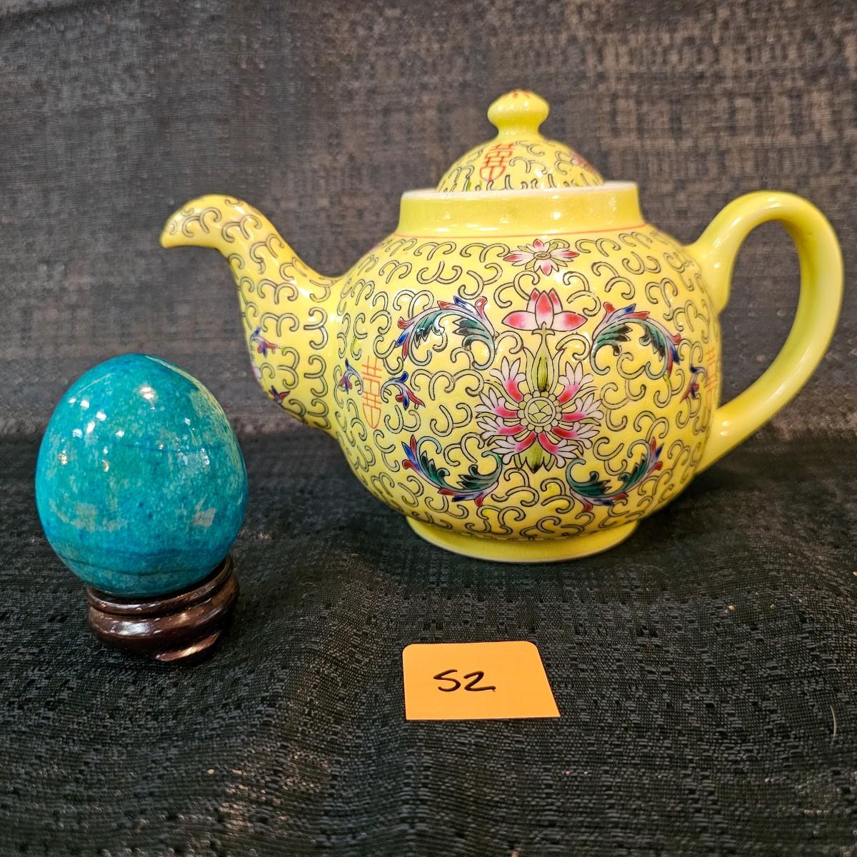 Chinese polychrome teapot, and dyed egg on stand, see photos for size and condition