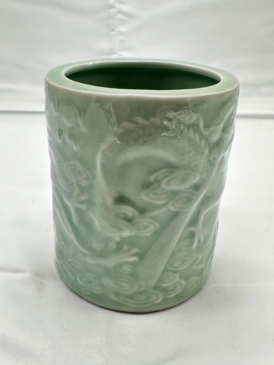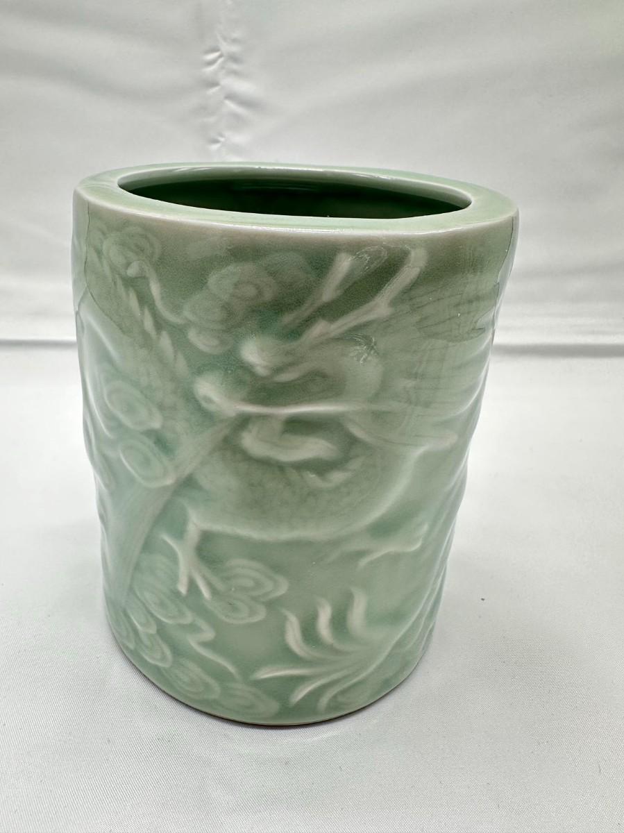 Chinese Vintage Green Celadon Dragon Brush Pot-local pickup and shipping available