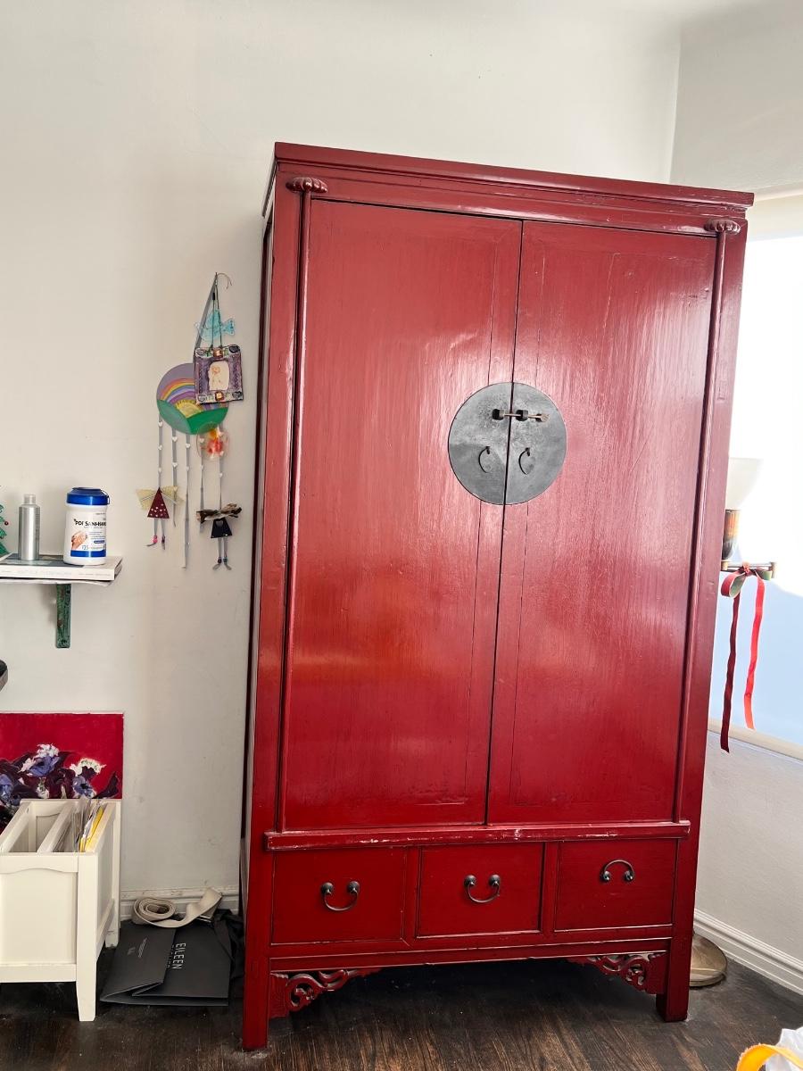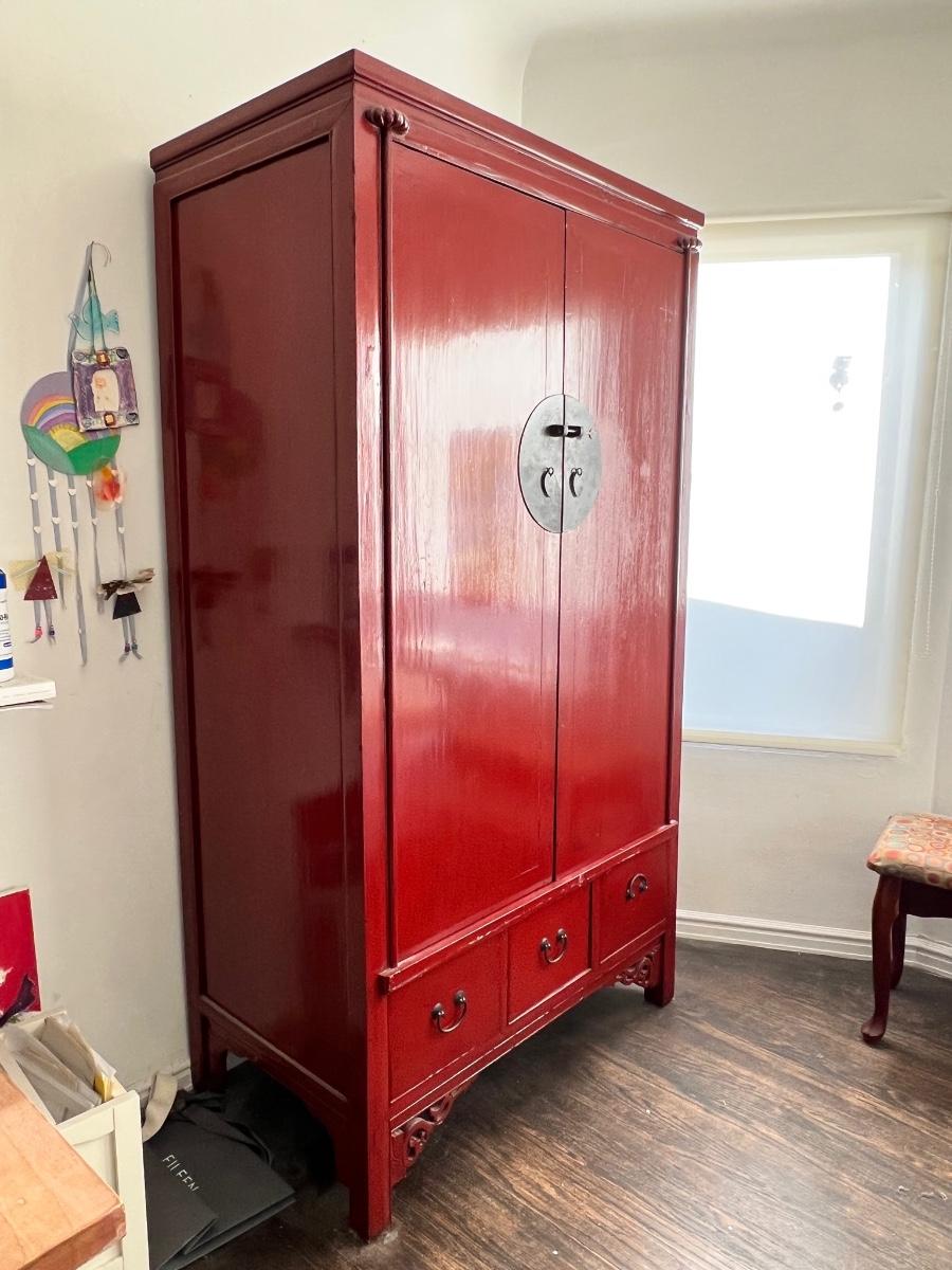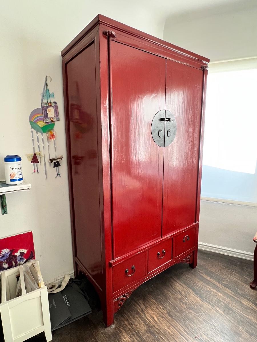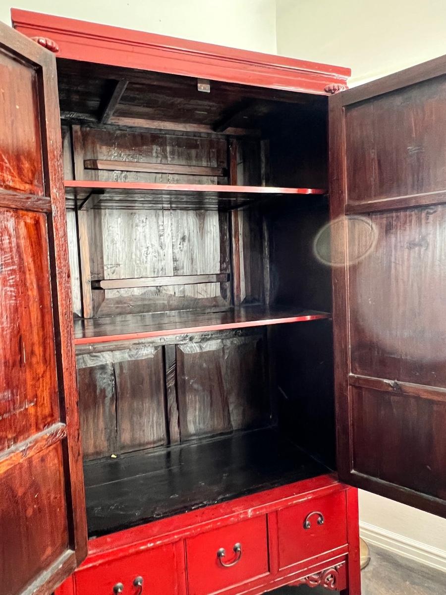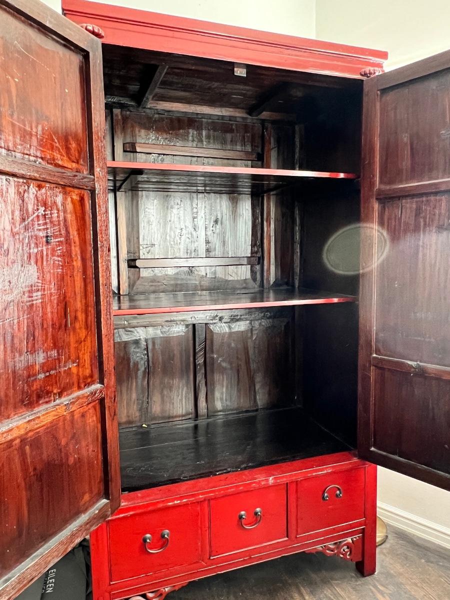 Dimensions: 1. Red paintedChinese armoire D20 1/2 x 43 1/2 x H72