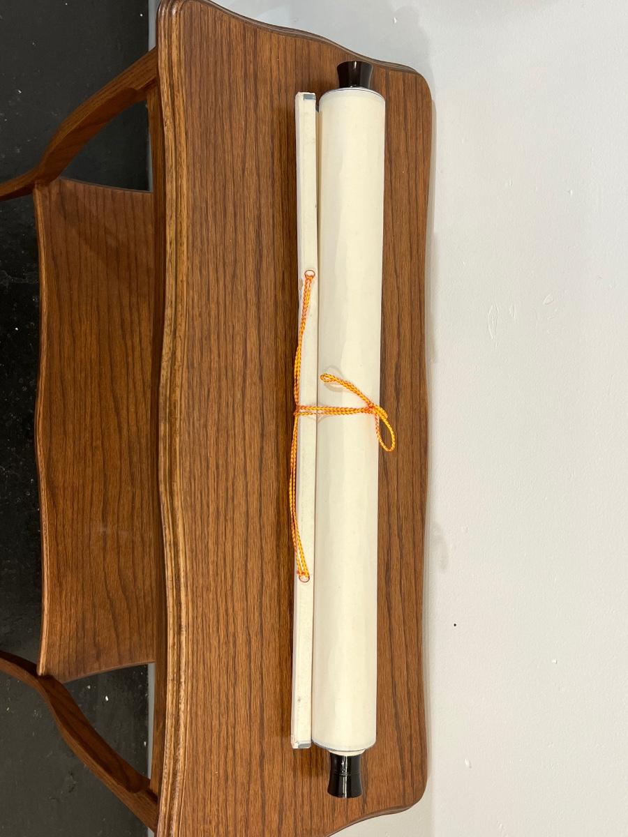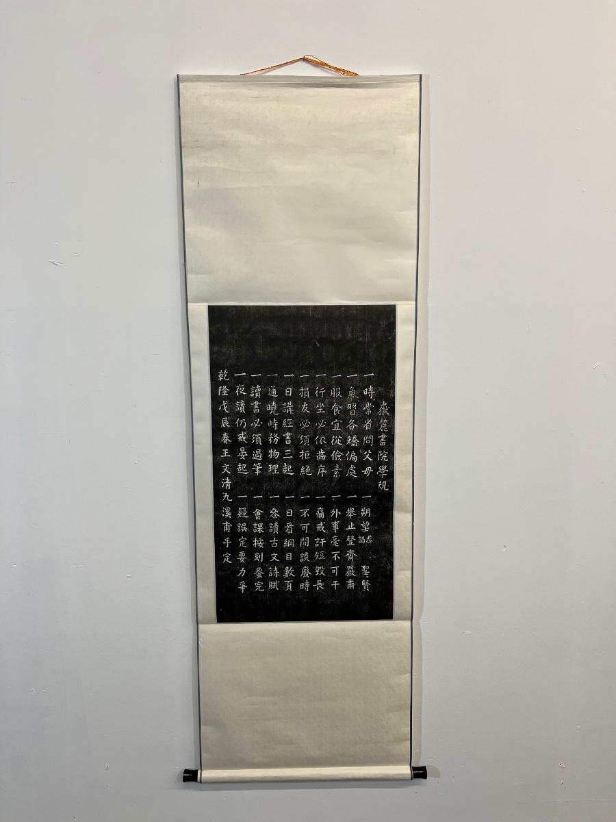 Chinese White Silk Scroll W/ Black Center & White Charaters 12"x38"