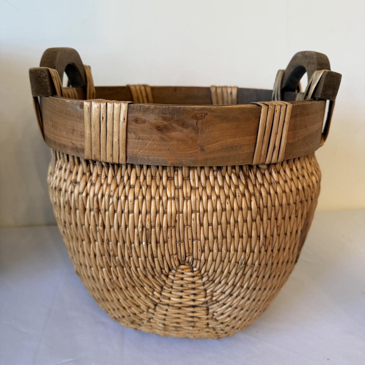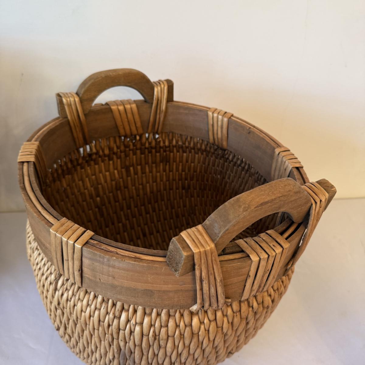 Chinese Woven Willow Basket with Indonesian Urn & Reed Basket (E-HS)