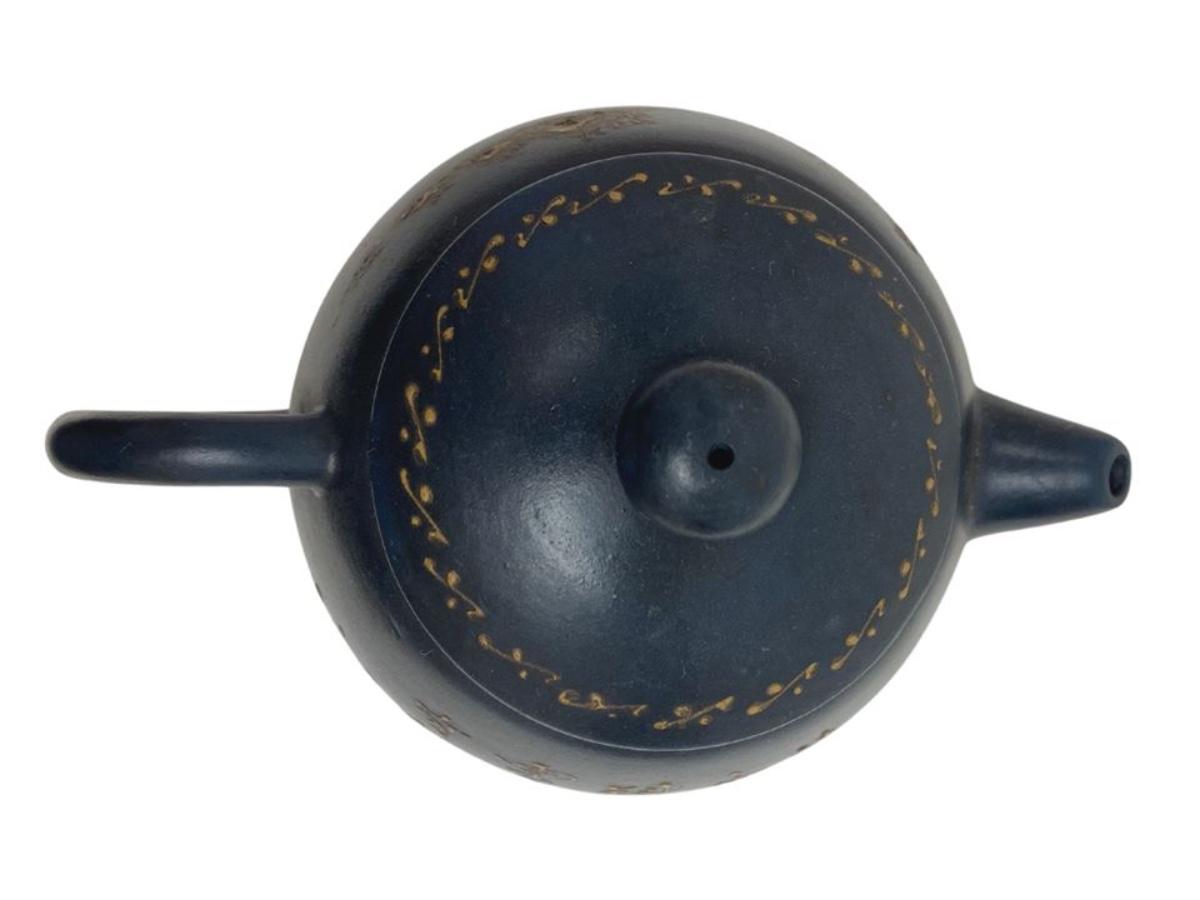 Likely Yixing. Hand painted. One side calligraphic, other scenic. Has stamp seal on bottom and in lid. Measures approx. 6"W x 4"H x 4"D.