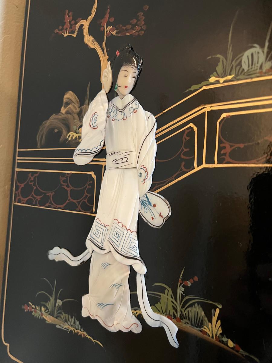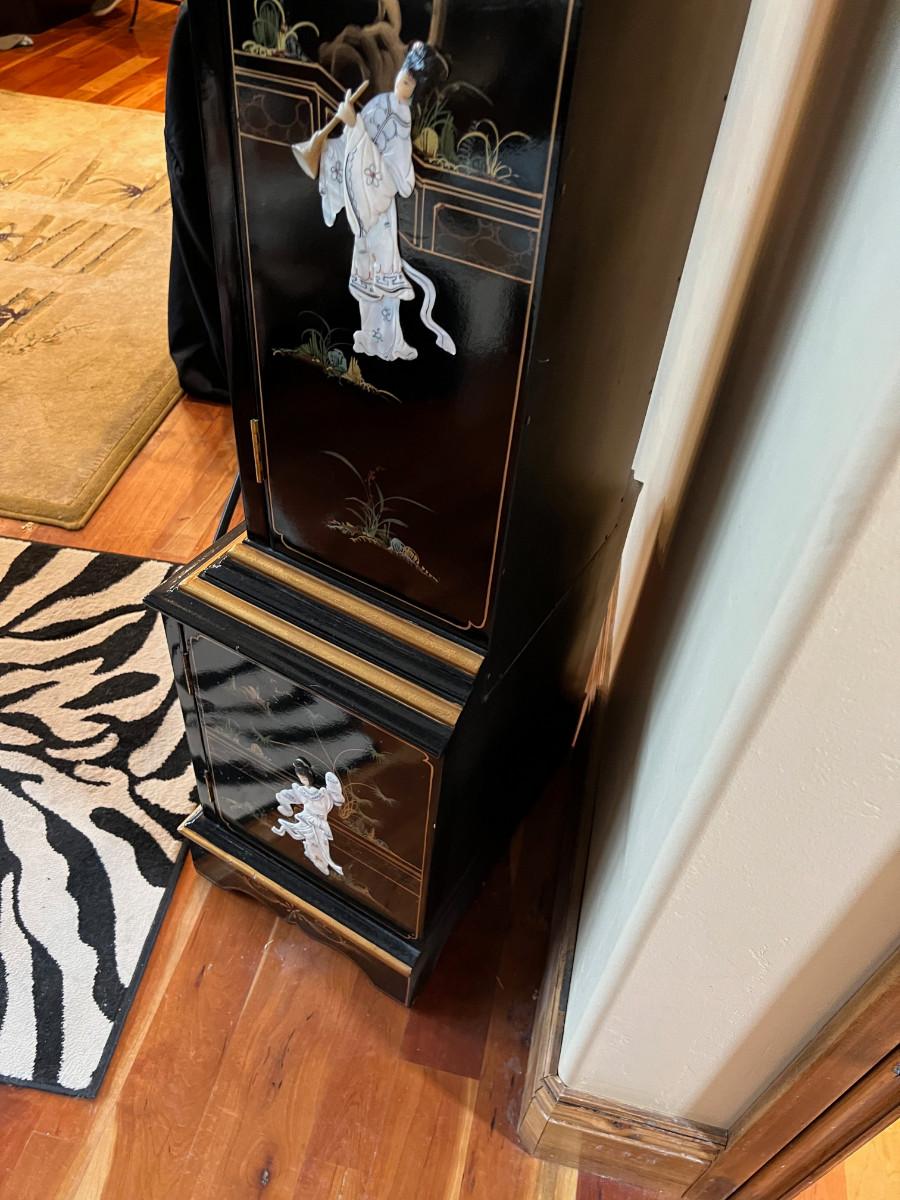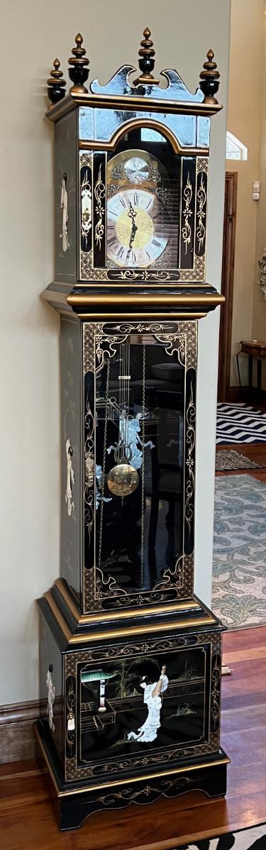 Chinoiserie Grandfather Clock Mother of Pearl Black Laquer