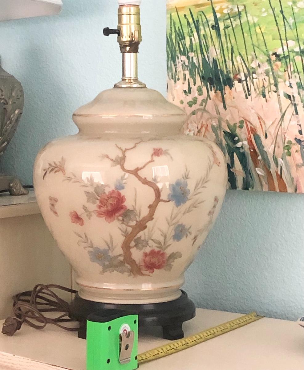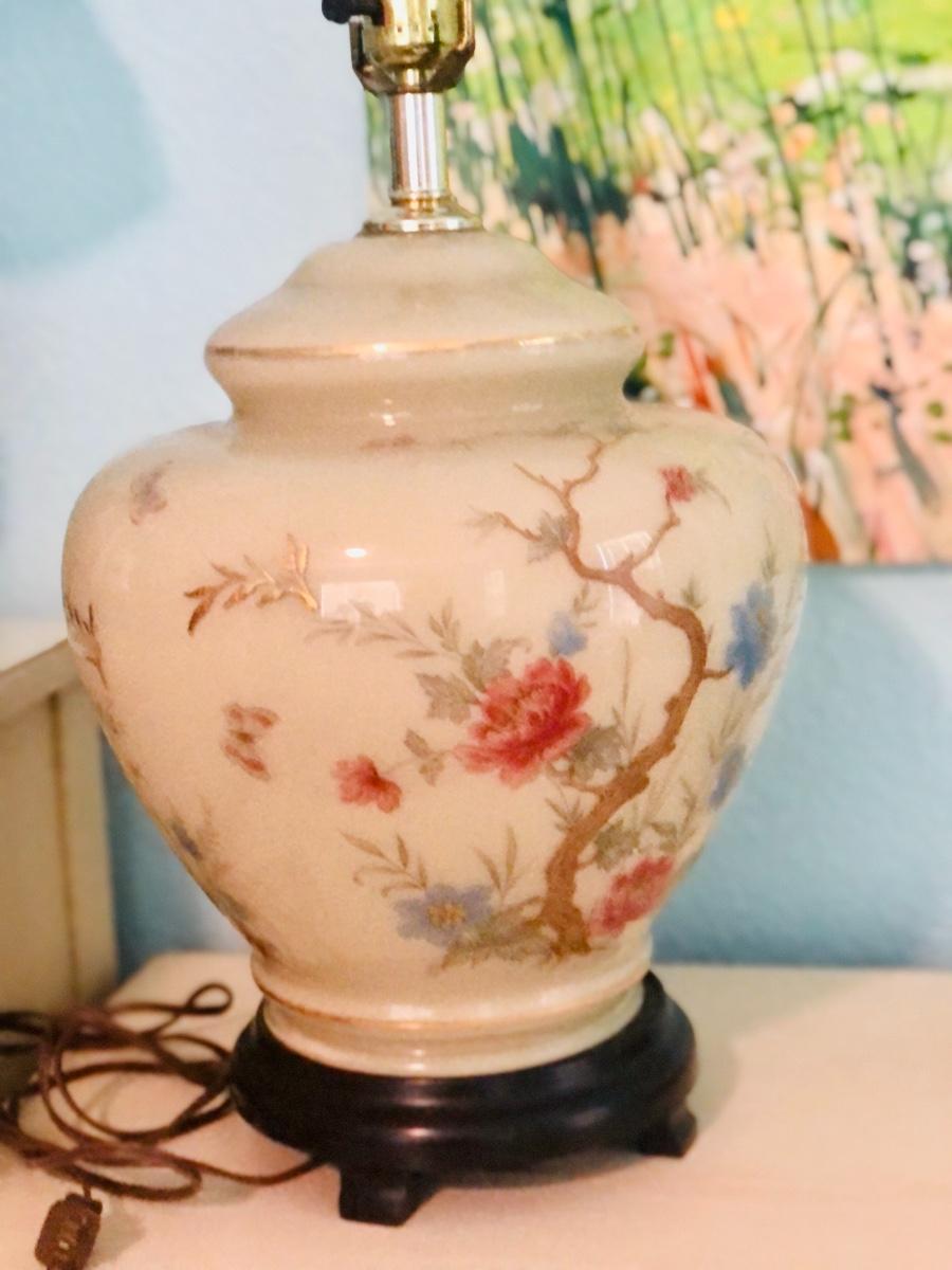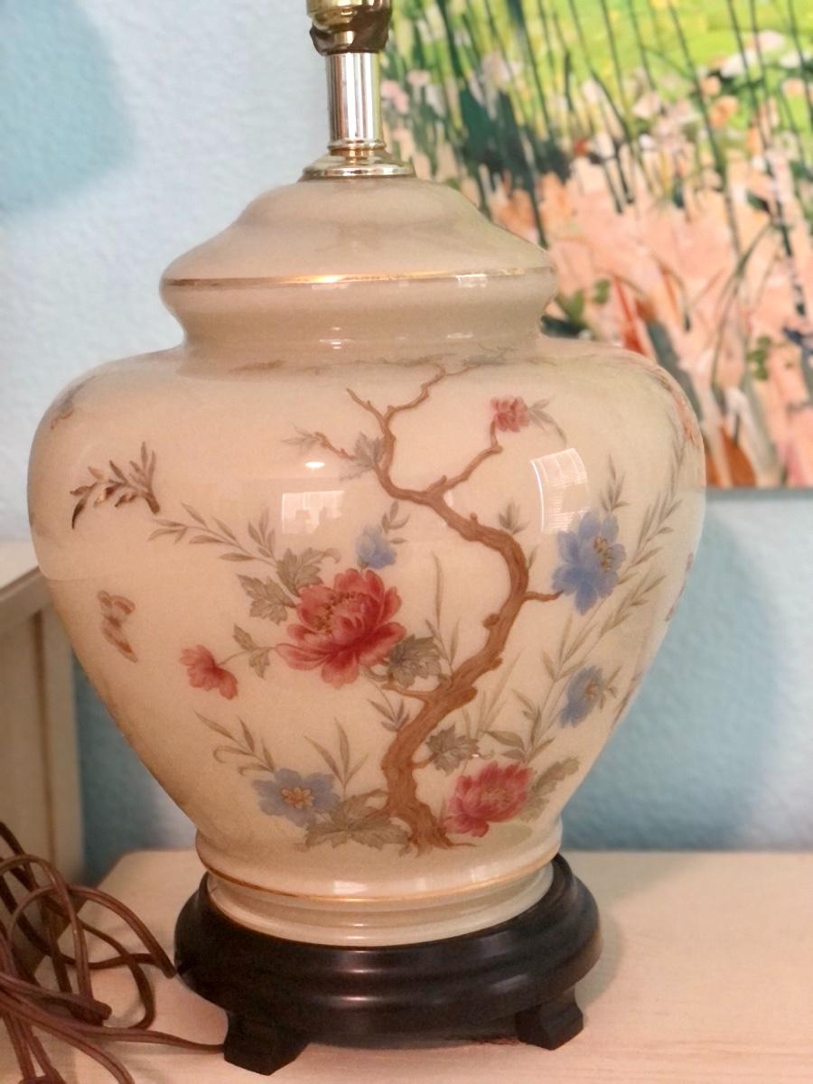 motif, gold trim & wooden base. Just add a harp & new lamp shade. These beauties were featured in high end china shops like Gump’s. Timeless style & beauty.