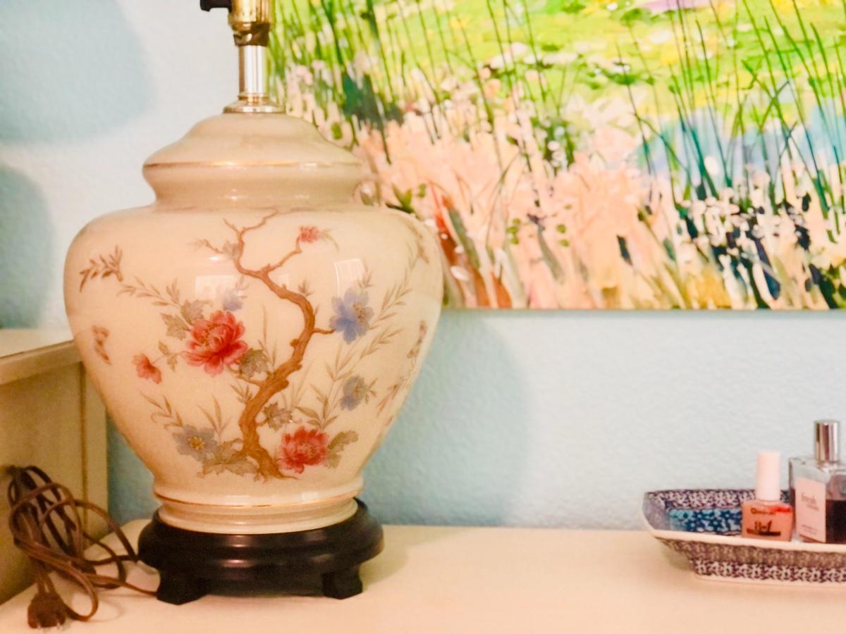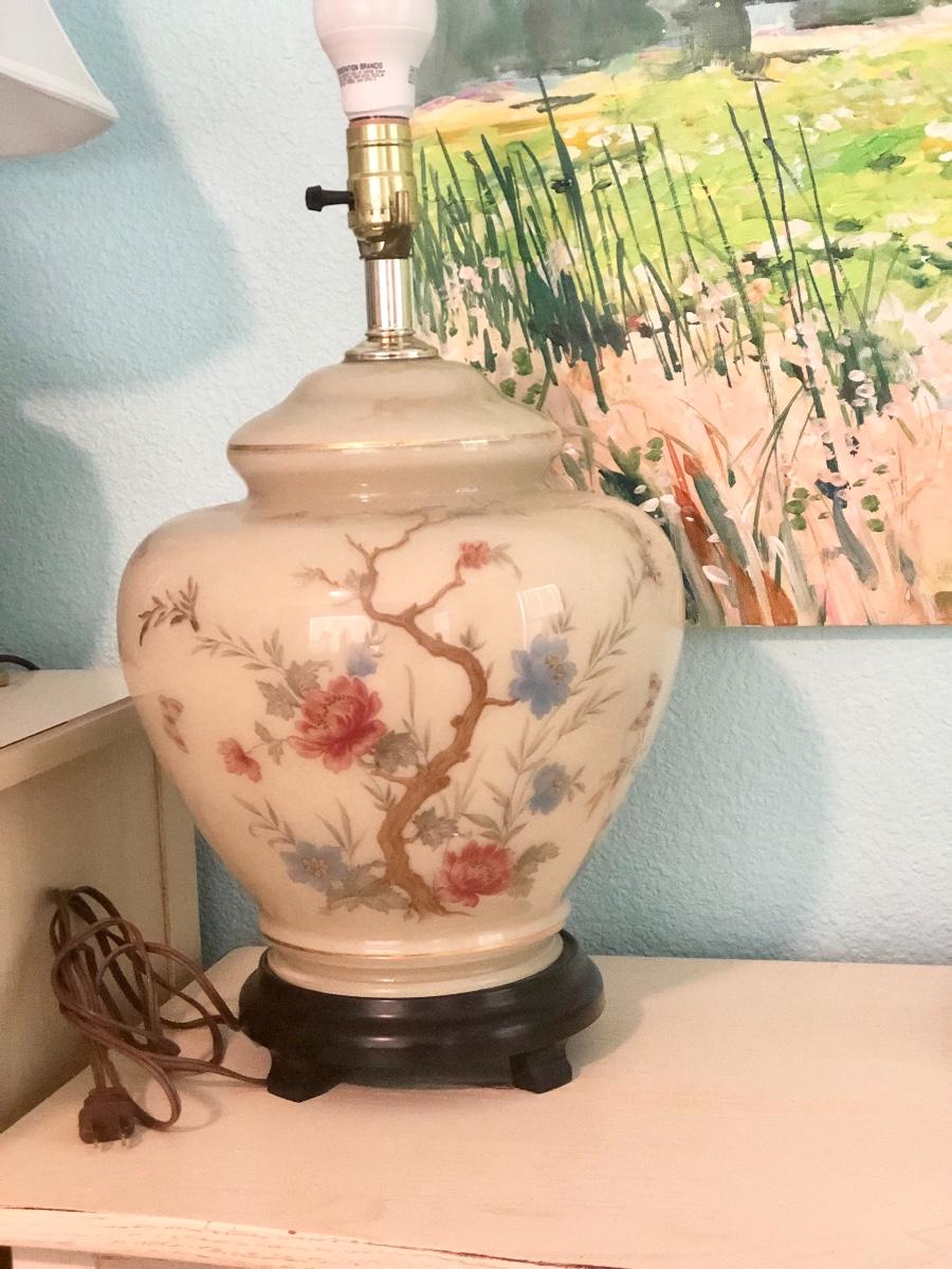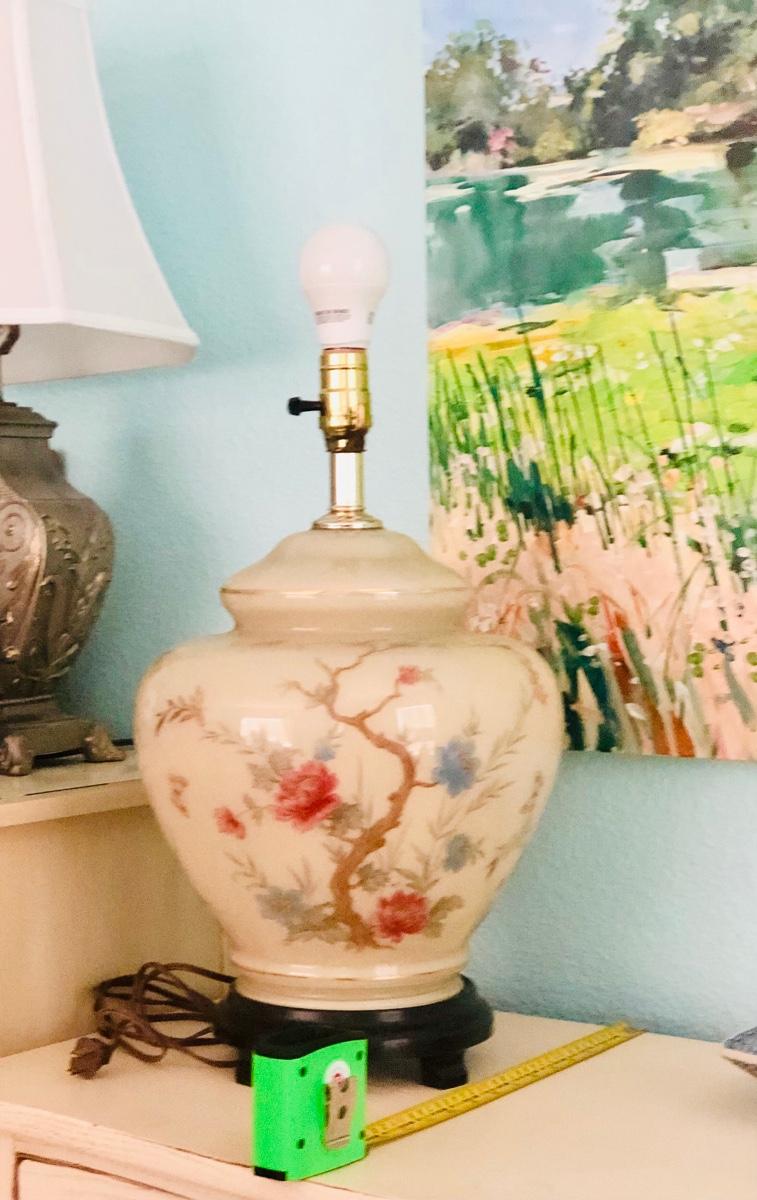 motif, gold trim & wooden base. Just add a harp & new lamp shade. These beauties were featured in high end china shops like Gump’s. Timeless style & beauty.