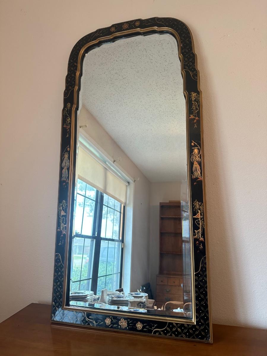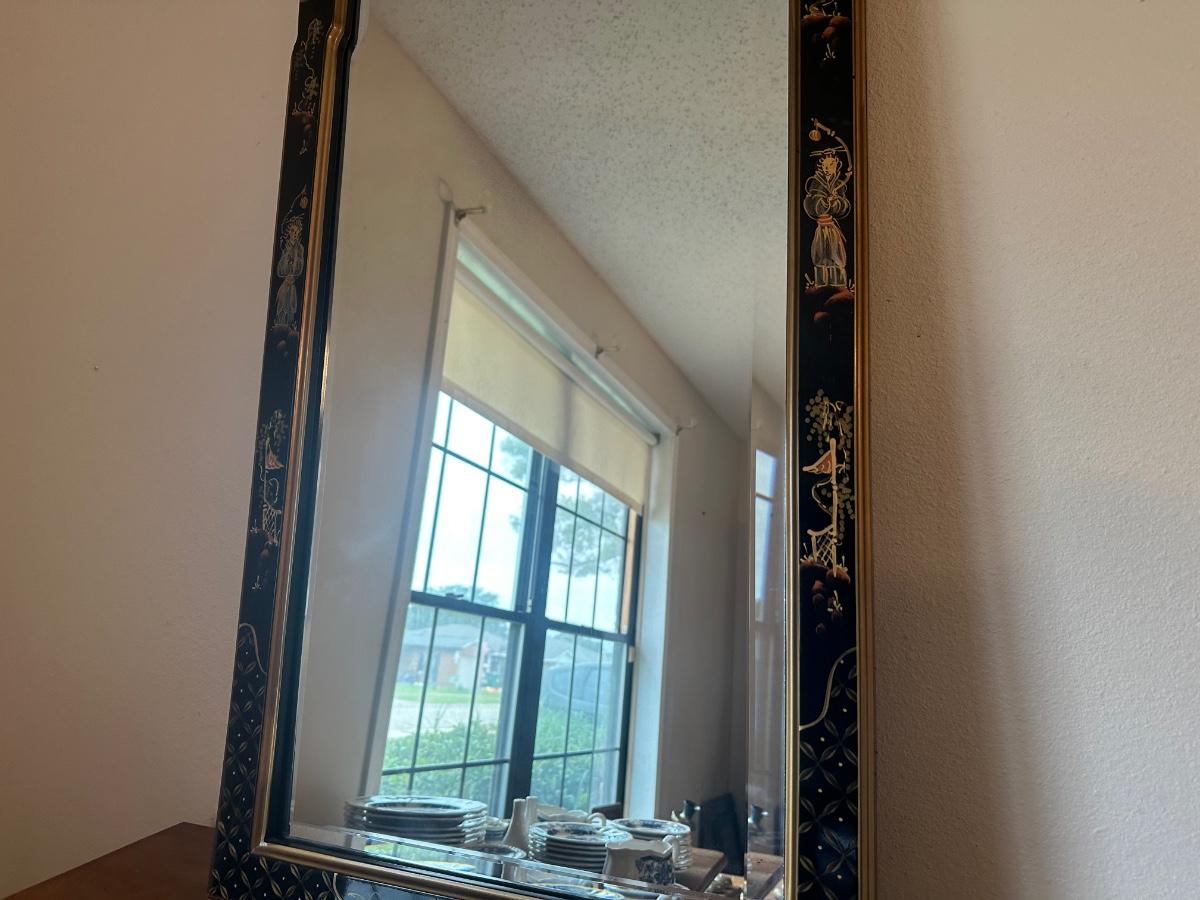 CHINOISERIE Mirror Black Gold Lacquer Asian