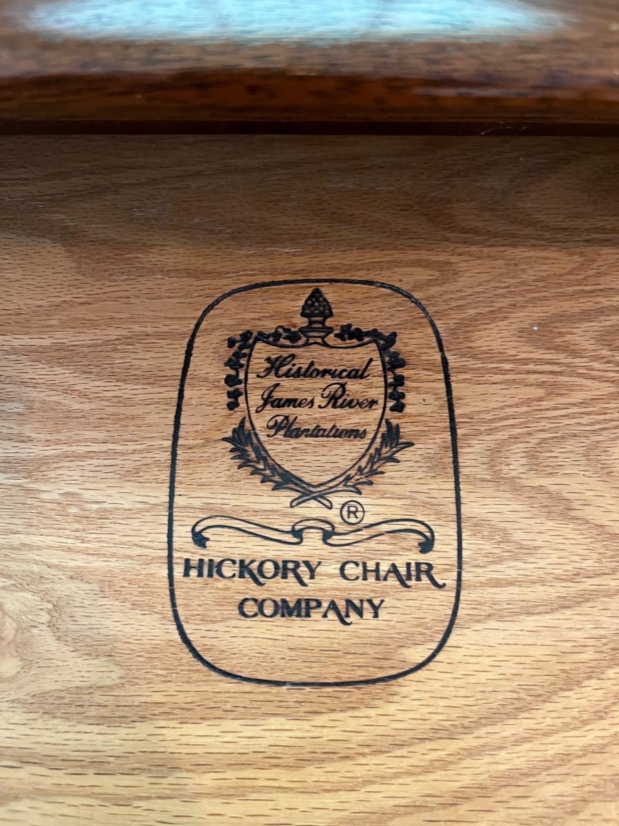 32"h x 36"l x 15"d--Lovely Chinoiserie style console table from the James River Plantation collection by Hickory Furniture. It has a burled walnut top with an inlaid border and is decorated with Chippendale style fretwork. It is in excellent condition and will bring a dash of style to any space.
