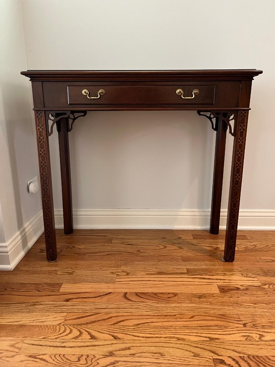 CHINOISERIE STYLE CONSOLE TABLE BY HICKORY, WALNUT AND BURLWOOD