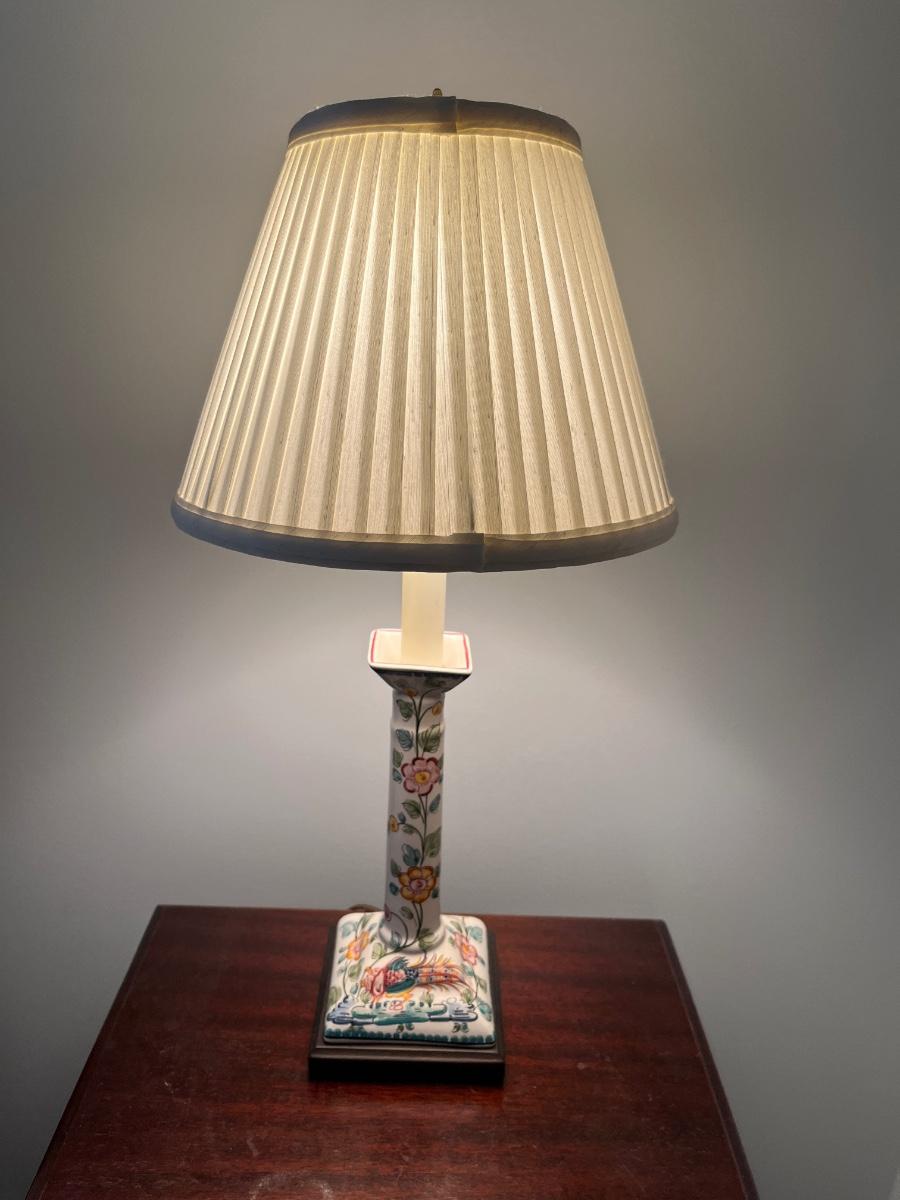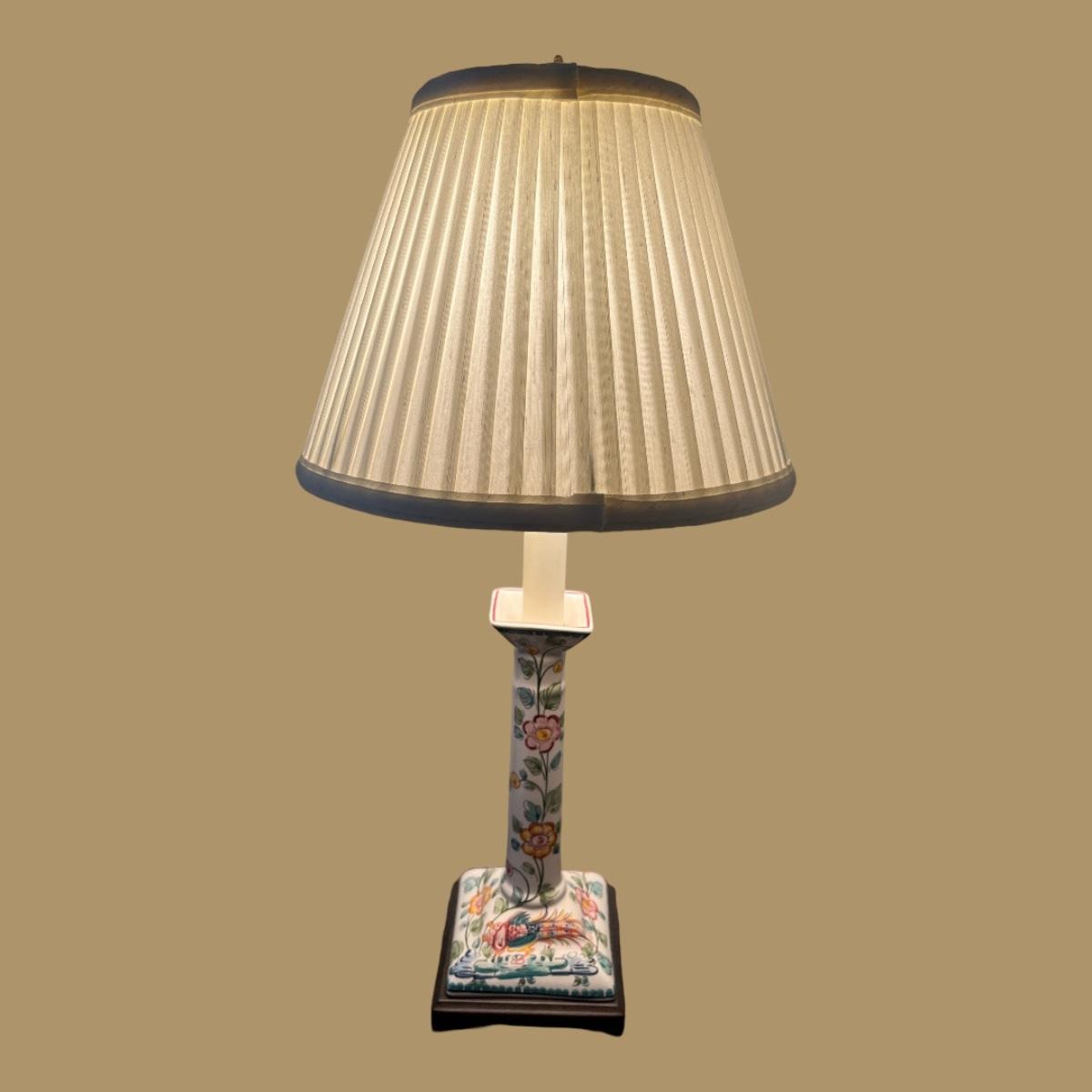 CHINOISERIE STYLE PORCELAIN CANDLESTICK LAMP