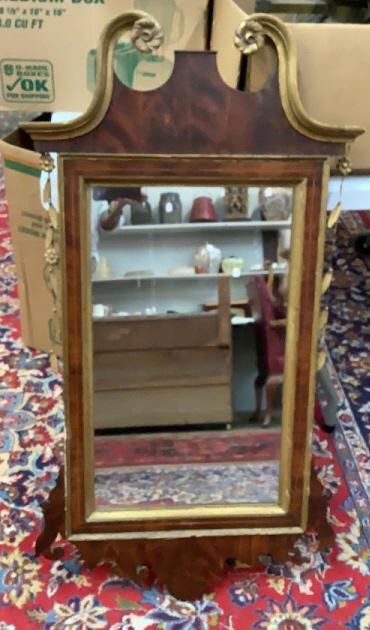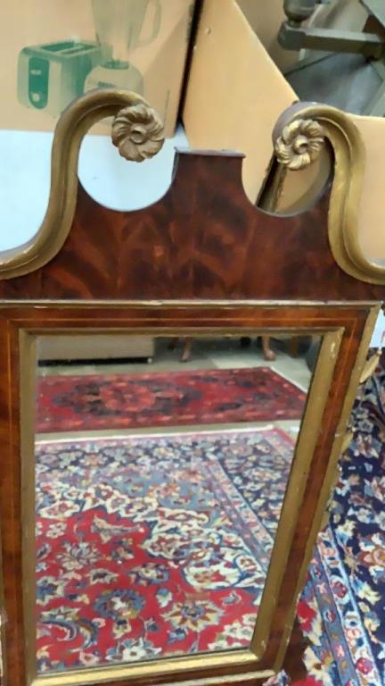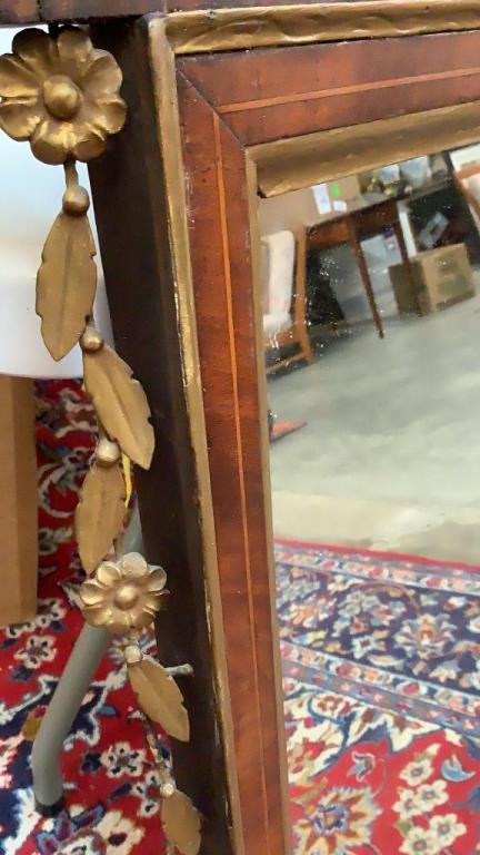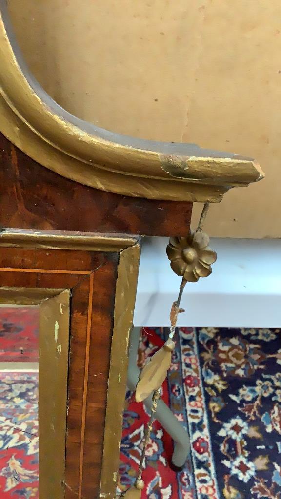 41 x 22 inchesÂ…string inlay, broken arch crest, rosettes with giltÂ…shaped skirt ..side floral and vineÂ…* losses to gilded trimsÂ…corner at right upper