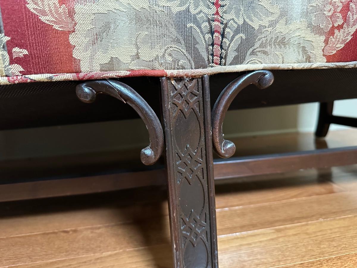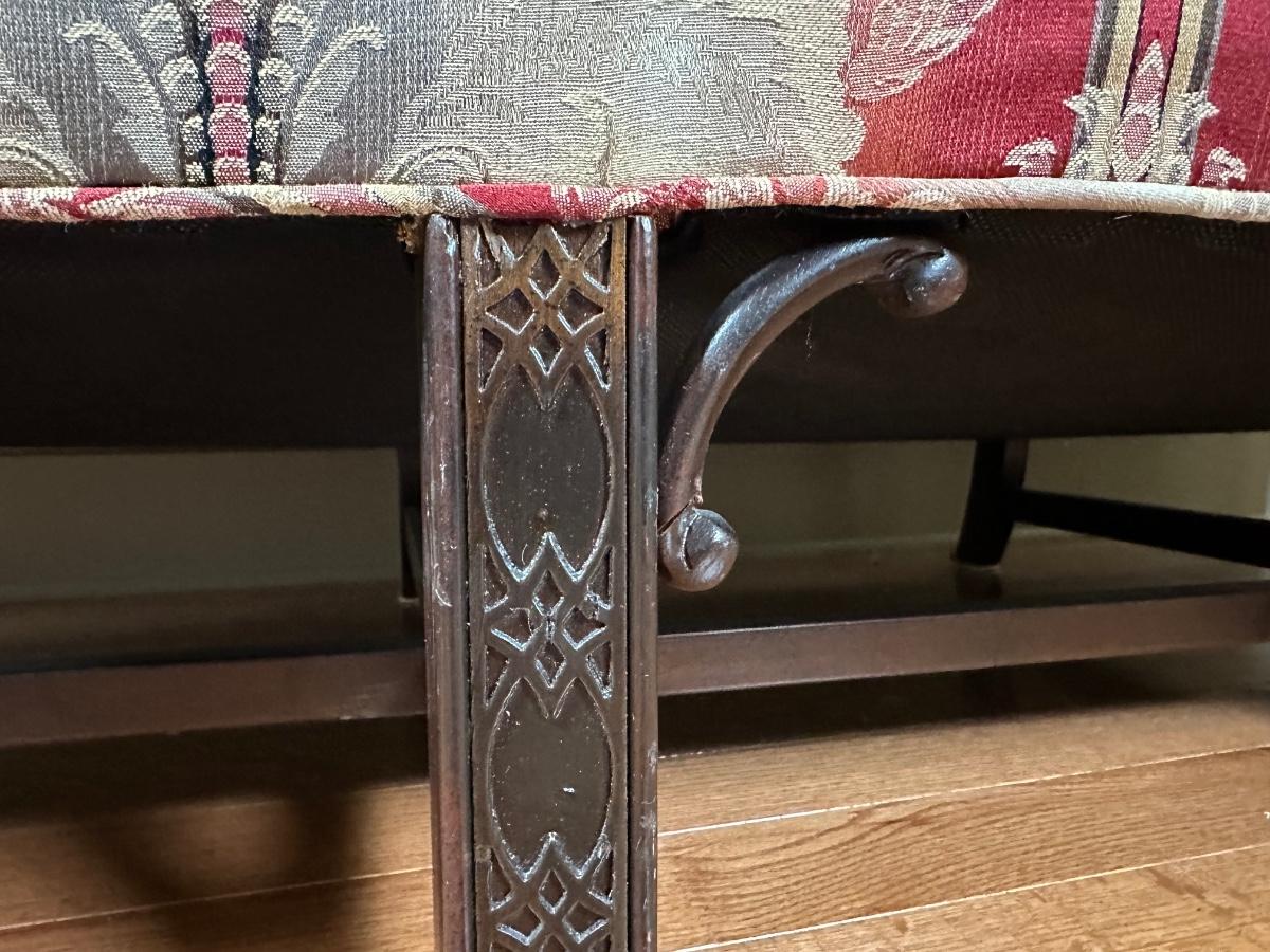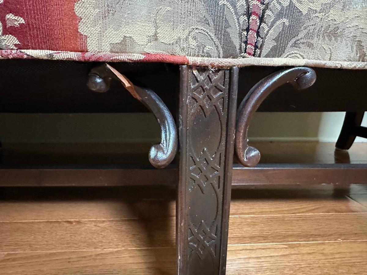 Two pieces of decorative trim on the legs are . broken (Pictured).