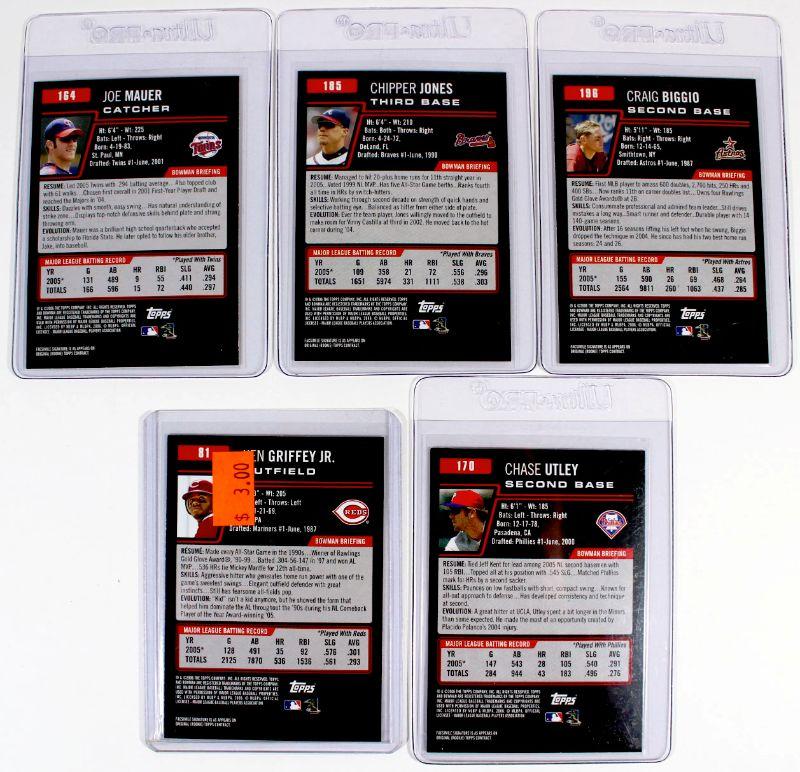 CHIPPER JONES Joe Mauer KEN GRIFFEY Chase Utley Baseball Cards Set 2006 Bowman/Topps MINT
