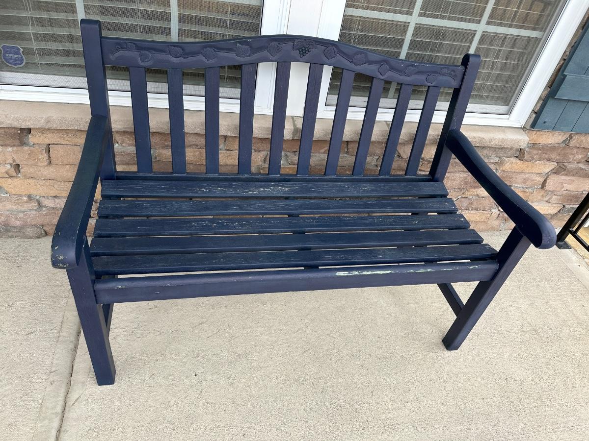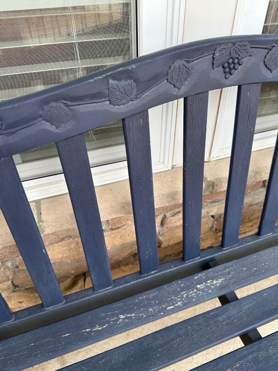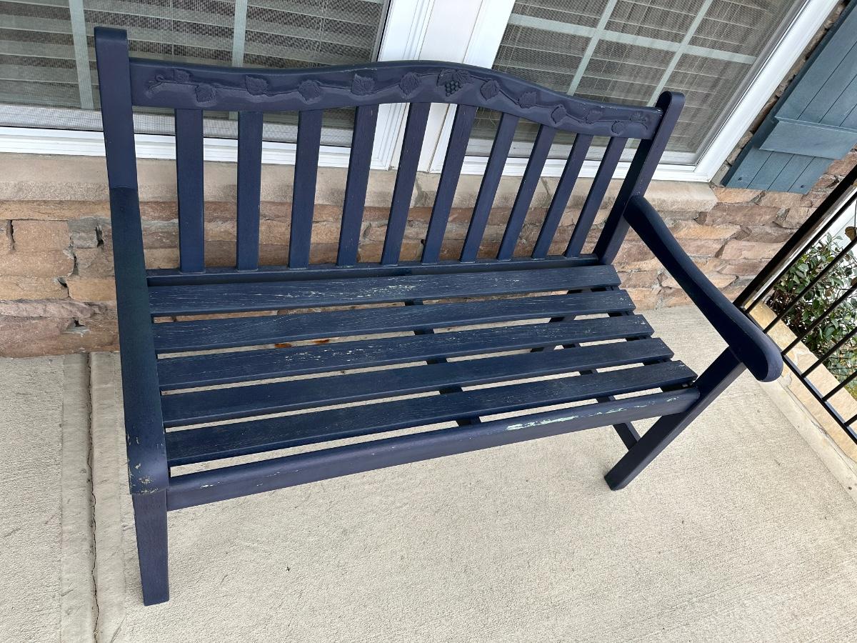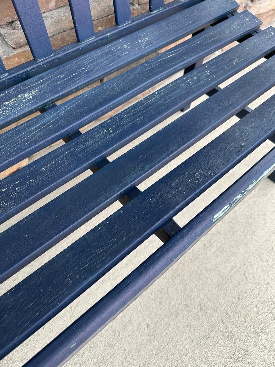chippy blue porch bench