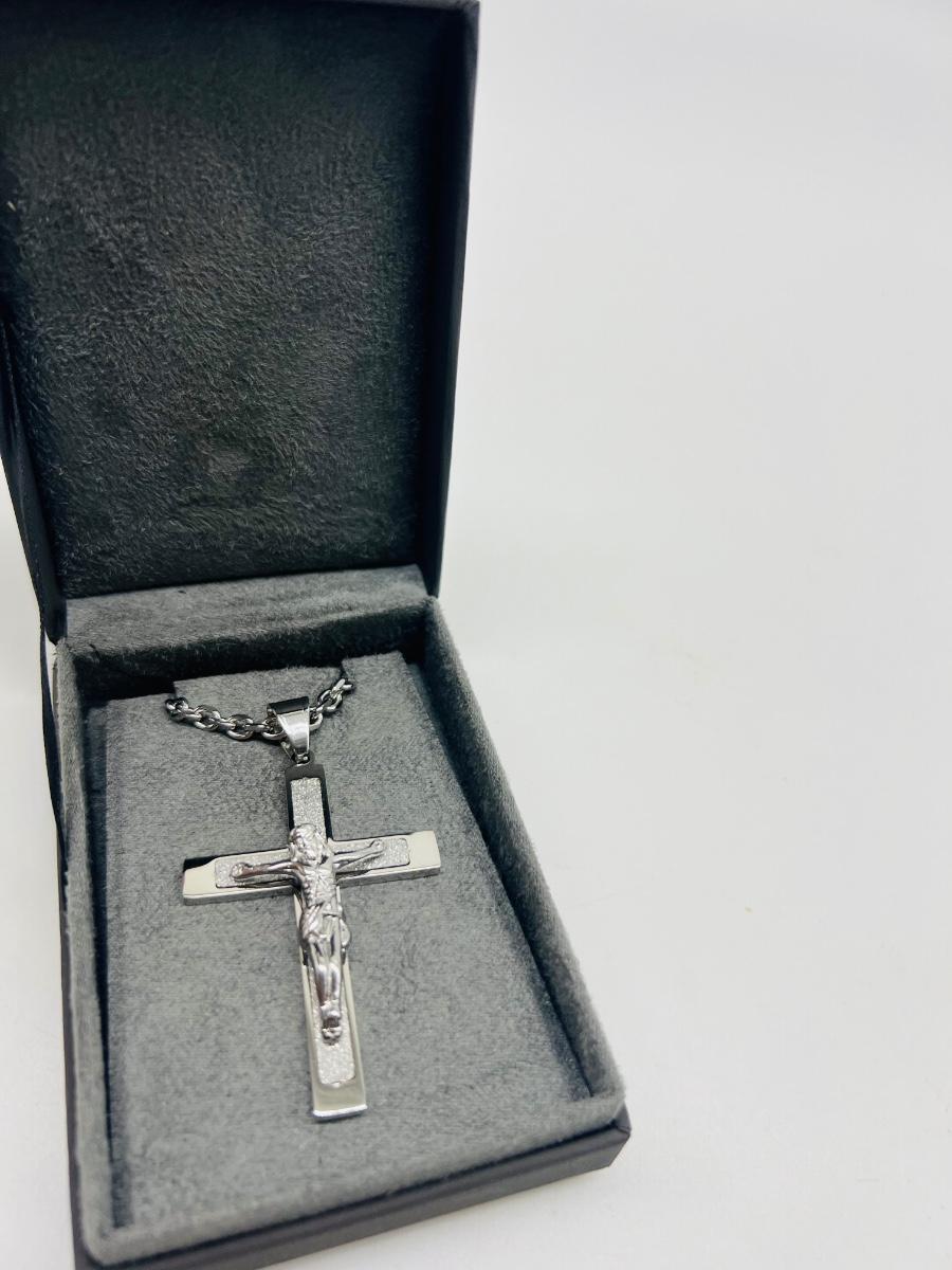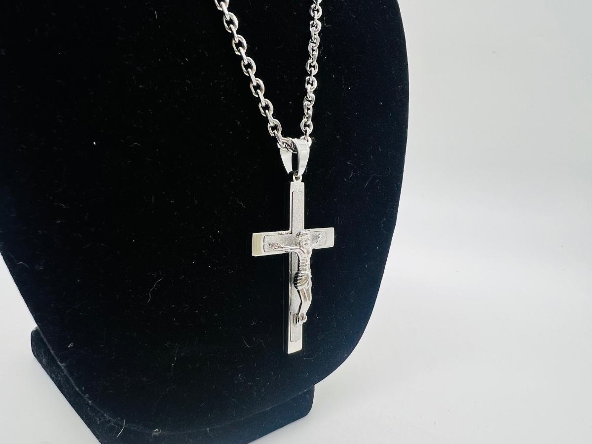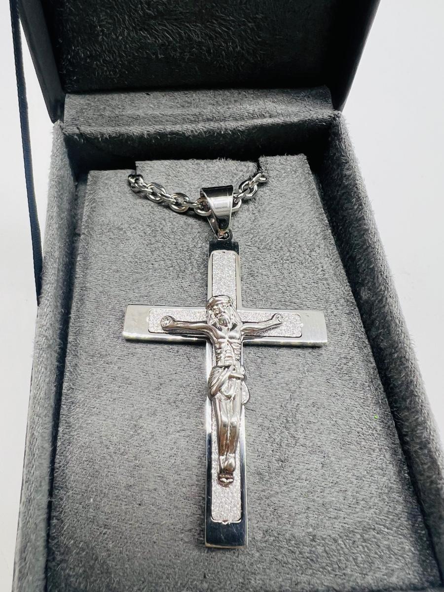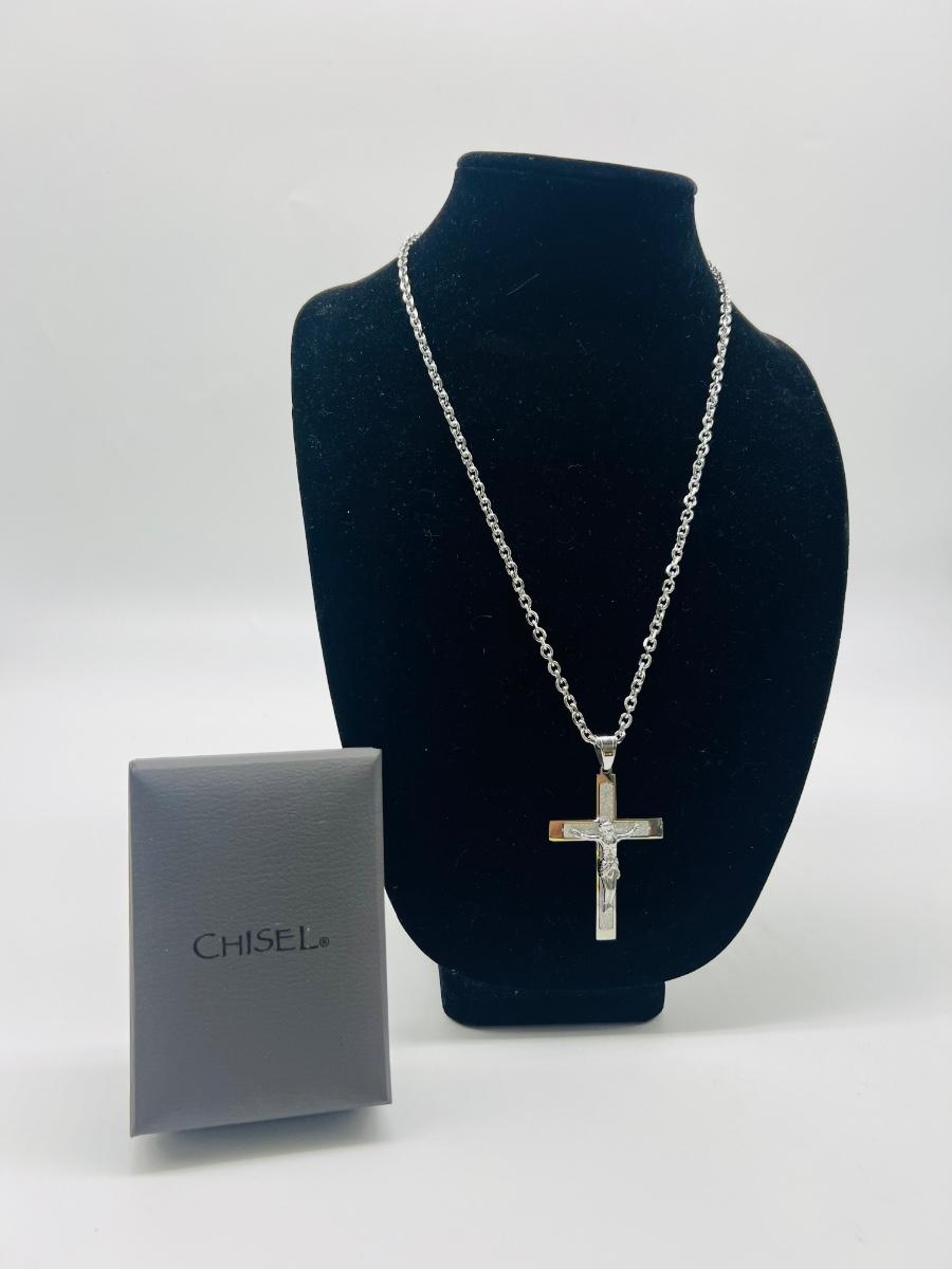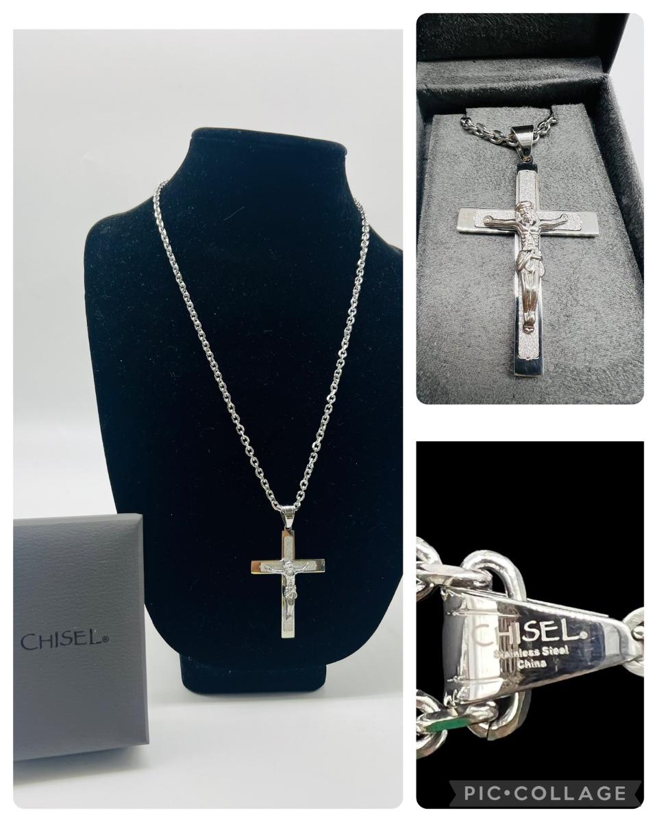 CHISEL Stainless steel necklace and chisel crucifix cross pendant Necklace measures 23 inches pendant measures 2 inches tall one and a half inches wide. This appears to be brand new never worn still in the box.