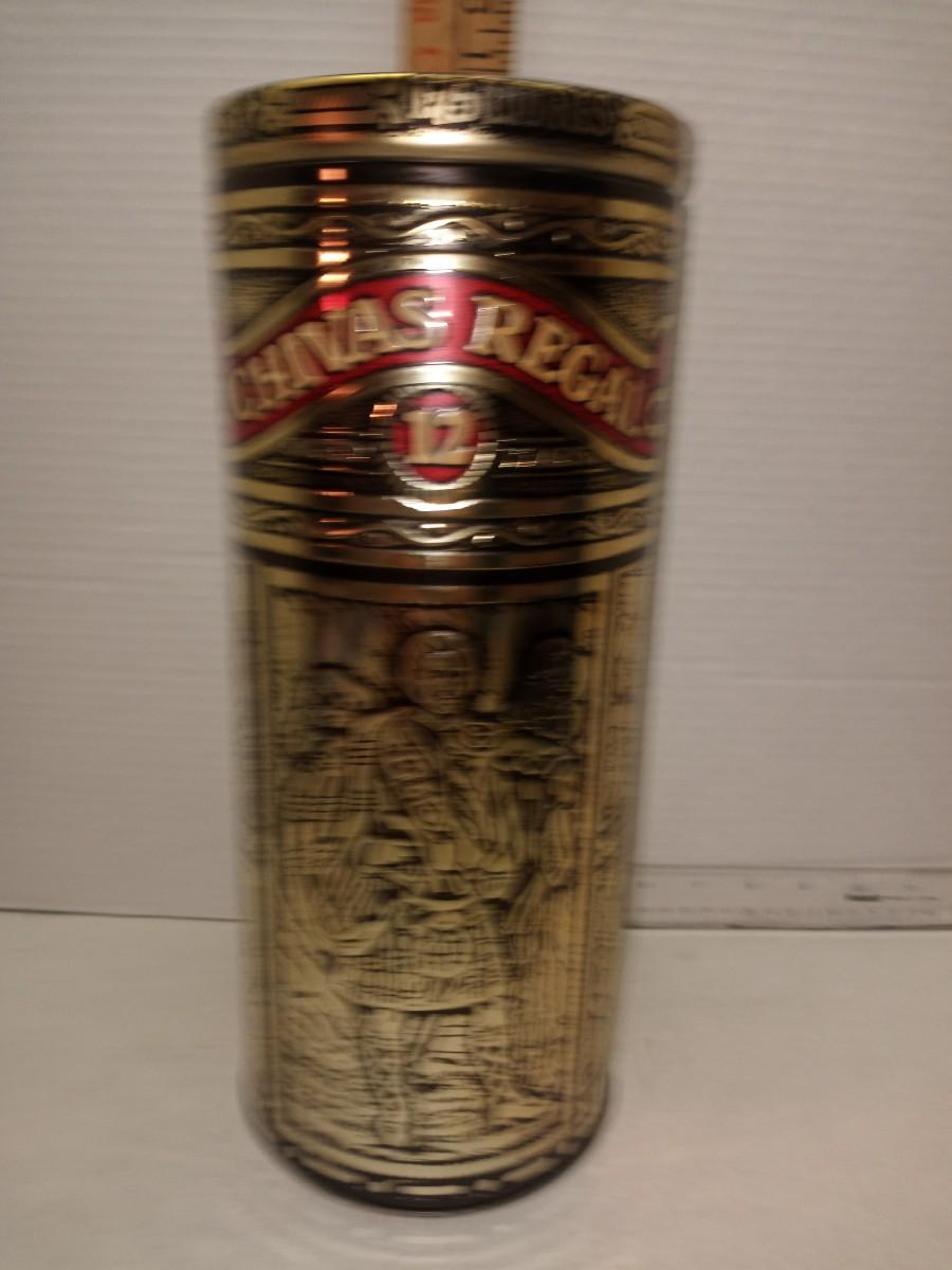 Chivas Regal Round Tin - Aged 12 Years - 9 1/4” Tall - 4” Opening - Scotland