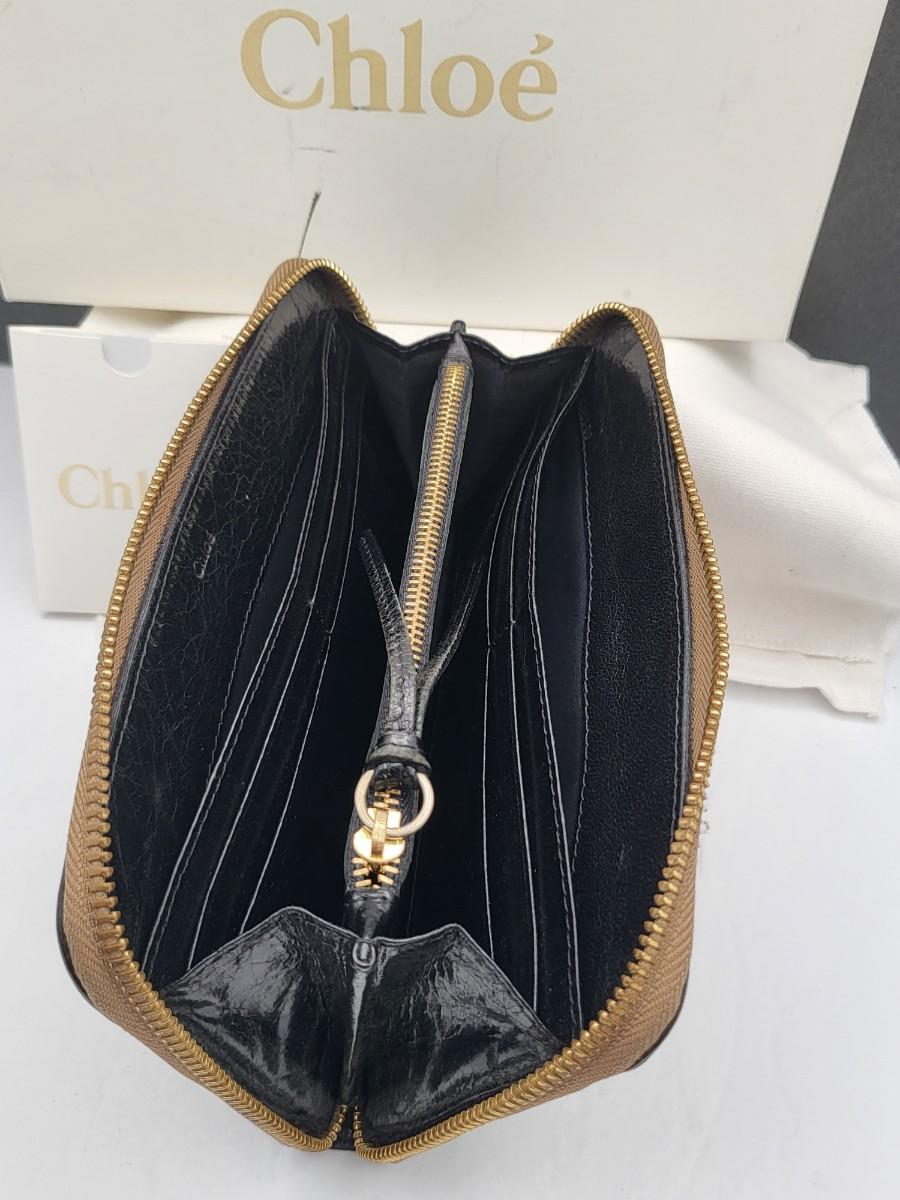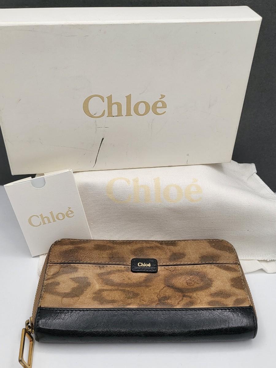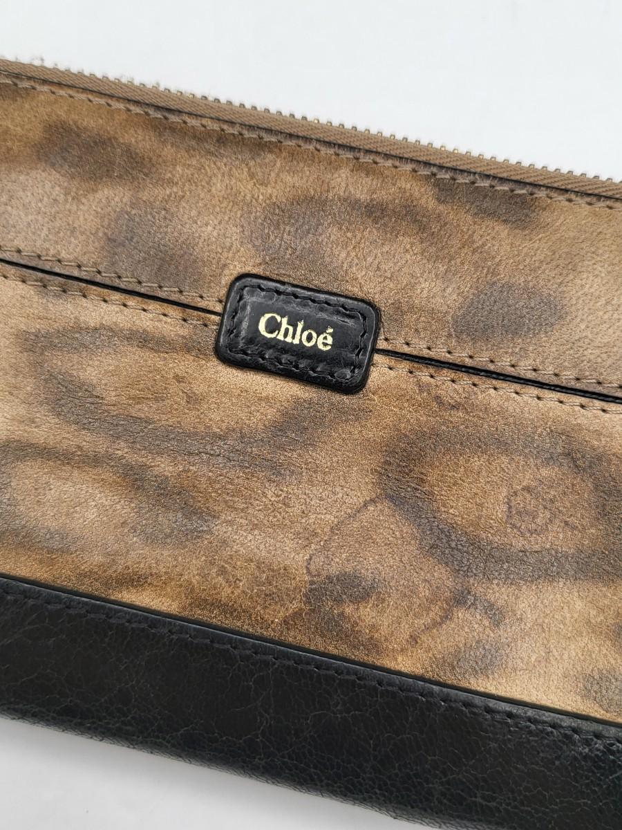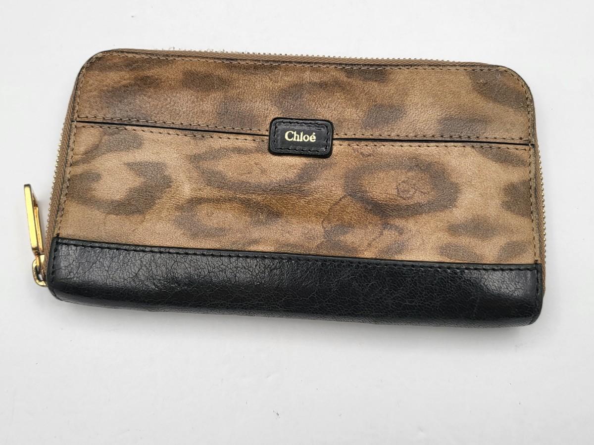 Authentic Chloe, brown animal print 3/4 zip around leather wallet. Comes with box and dust bag sleeve. Wallet measures 7.5" x 4". COA card. Good pre-owned condition.
