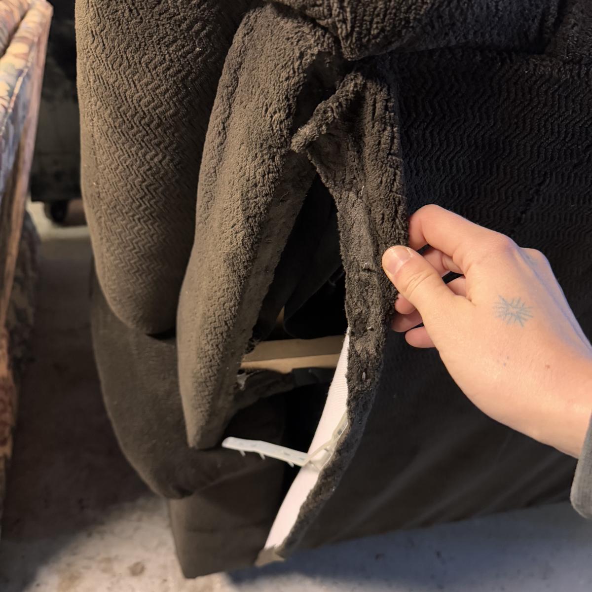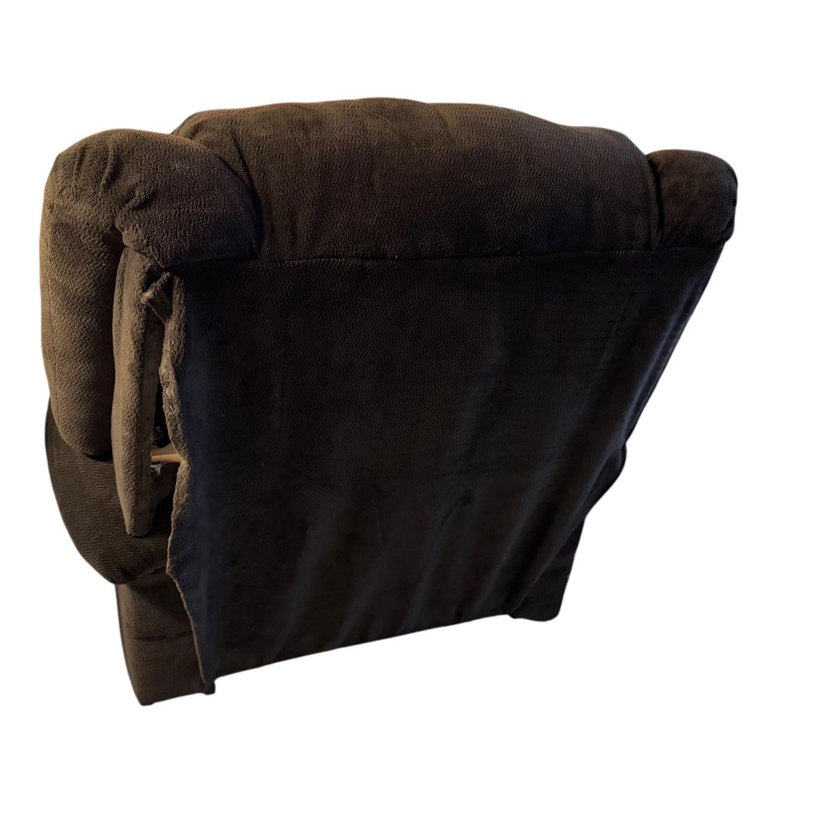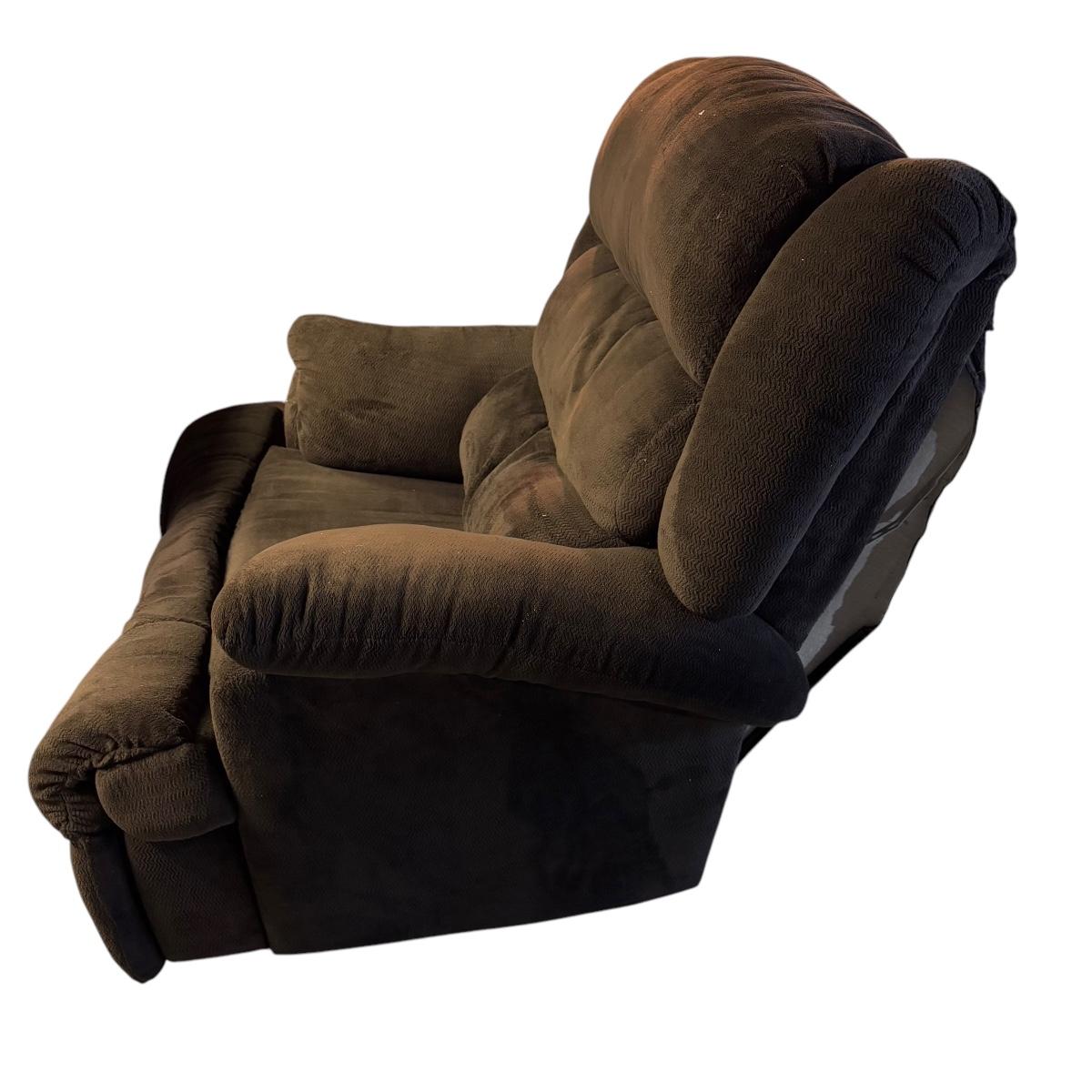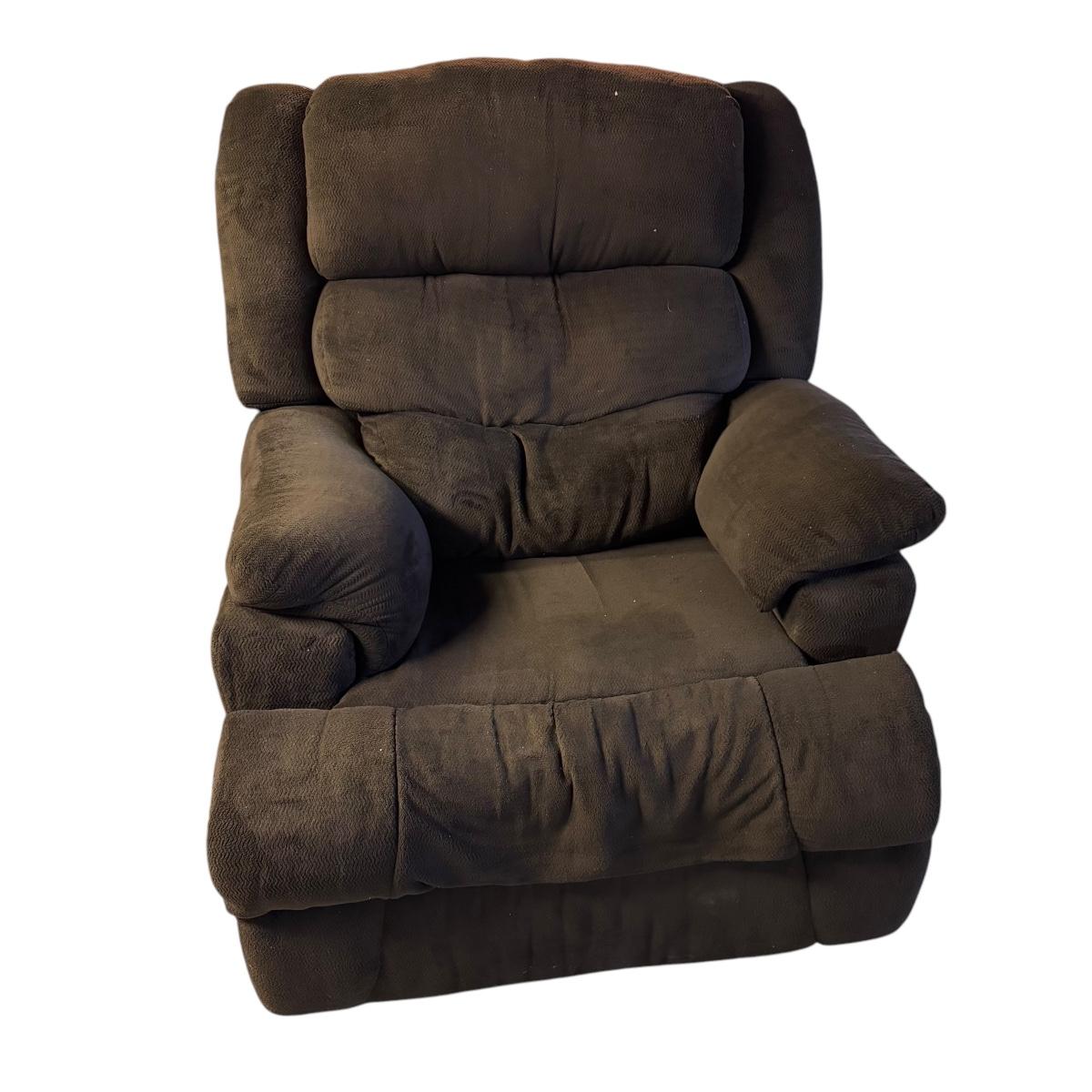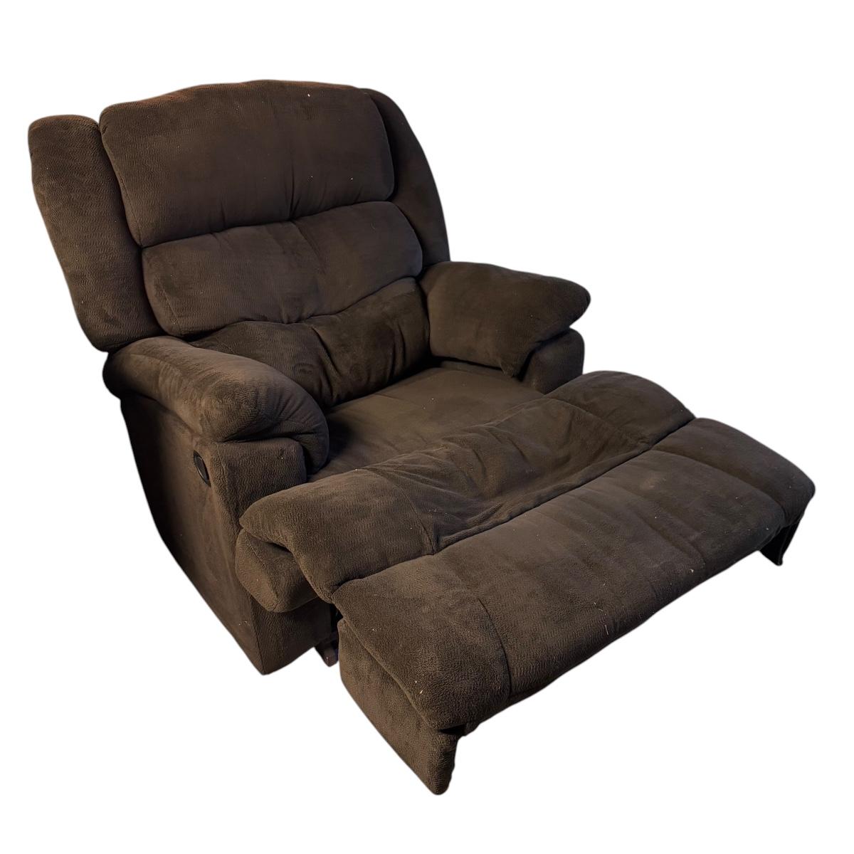 Lot includes one chocolate brown colored oversized recliner. This big boy measures 38” x 63” x 42”H when reclined and 38” x 39” x 42”H when not reclined. The fabric on the back of the chair needs to be reinforced - see pictures included. Local pickup only. Winning bidder must bring assistance to help move and load this item due to its weight and/or size.
