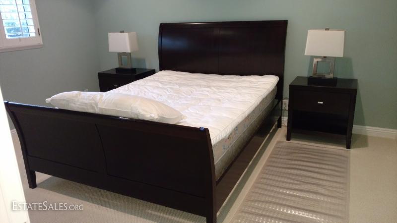 Chocolate Brown Queen-size Sleigh Bed and Two Matching Night Stands